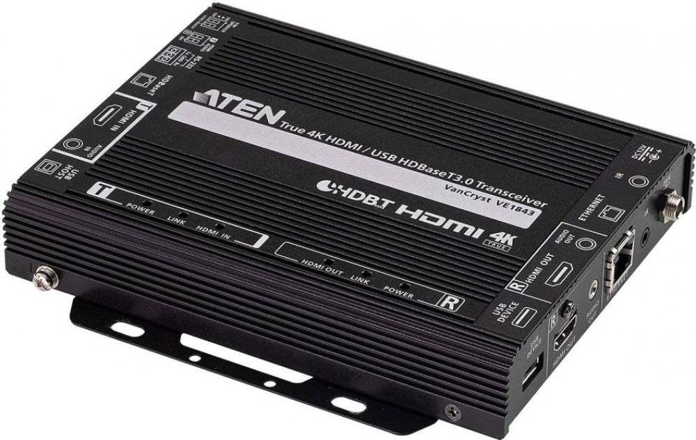 ParametrPopisPoužitíUmožňuje prodloužit AV signál HDMI až na vzdálenost 100m s použitím jednoho TP kabelu kategorie 6a při rozlišení až 4K@60Hz. Zároveň podporuje i přenos RS232, IR ovládání, gigabitový ethernet a analogové audio.TypVE1843Konektoryvstup HDMI: HDMI A(F)