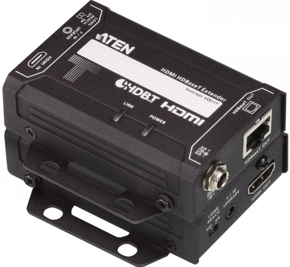Popis produktu: VE811 ATEN HDMI HDBaseT Extender po cat5e do 100m, Ultra HD 4k x 2k podpora ATEN VE811 HDMI HDBaseT Extender zaručuje optimální připojení HDMI až do vzdálenosti 100 m přes jediný kabel Cat 5e / 6 / 6a kabel. Model VE811 splňuje specifikaci HDMI včetně 3D, Deep Color, HD bezztrátových audio formátů a CEC passthrough. Podporuje zvukové a video signály Dolby Digital 5.1, DTS HD při rozlišení až 4K. Navíc VE811 podporuje dlouhý dosah který poskytuje efektivní prostředky pro rozšíření signálů HDMI až na 150 m přes jediný kabel Cat 5e / 6 kabel. Díky kompaktnímu designu a technologickému top designu je snadné ho připojit na libovolné místo. Navržený pro dnešní digitální trendy, VE811 je ideální pro zasedací místnosti nebo jiné aplikace vyžadující vysokou kvalitu videa HDMI pro prodloužení na velké vzdálenosti. Vlastnosti: ATEN VE811 HDMI HDBaseT Extender zaručuje optimální připojení HDMI až do vzdálenosti 100 m přes jediný kabel Cat 5e / 6 / 6a VE811 splňuje specifikaci HDMI, včetně 3D, Deep Color, HD bezztrátových audio formátů a CEC passthrough. Podporuje zvukové a video signály Dolby Digital 5.1, DTS HD při rozlišení až 4K. Navíc VE811 podporuje režim dlouhého dosahu, který poskytuje efektivní prostředky pro rozšíření signálů HDMI až na 150m přes jediný kabel Cat 5e / 6. Díky kompaktnímu designu a technologickému designu je kompatibilní s VE811 snadným připojením na libovolné místo. Navržený pro dnešní digitální trendy, VE811 je ideální pro zasedací místnosti nebo pro jakékoliv nastavení, které vyžadují vysokou kvalitu videa HDMI, které lze prodloužit na velké vzdálenosti. Připojení HDBaseT - rozšiřuje připojení HDMI až na 100m přes jediný kabel Cat 5e / 6 / 6a Podporuje režim dlouhého dosahu HDBaseT - až 150 m přes jediný kabel Cat 5e / 6 při rozlišení až 1080p HDMI (3D, Deep Color, 4K) HDCP 2.2 kompatibilní Podporuje rozlišení až do formátu Ultra HD 4kx2k a 1080p Full HD Řízení spotřebitelské elektroniky (CEC) umožňuje propojeným zařízením HDMI komunikovat a reagovat na jediné dálkové ovládání Podporuje širokoúhlý formát Plug and play - není vyžadován žádný software Zabudovaná ochrana 8KV / 15 KV ESD Montovatelný do racku Je možné samostatně zakoupit jen vysílací modul VE811T a samostatně přijímací modul VE811R Max. rozlišení / vzdálenost až 4K @ 70m (Cat 5e/6) / 100m (Cat 6a/ATEN 2L-2910 Cat6); 1080p @ 100m (Cat 5e/6/6a) 4K podporované mody: 4096 x 2160 / 3840 x 2160 @ 60Hz (4:2:0); 4096 x 2160 / 3840 x 2160 @ 30Hz (4:4:4)