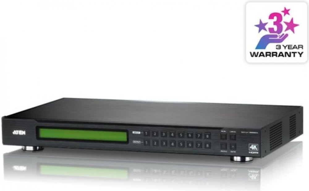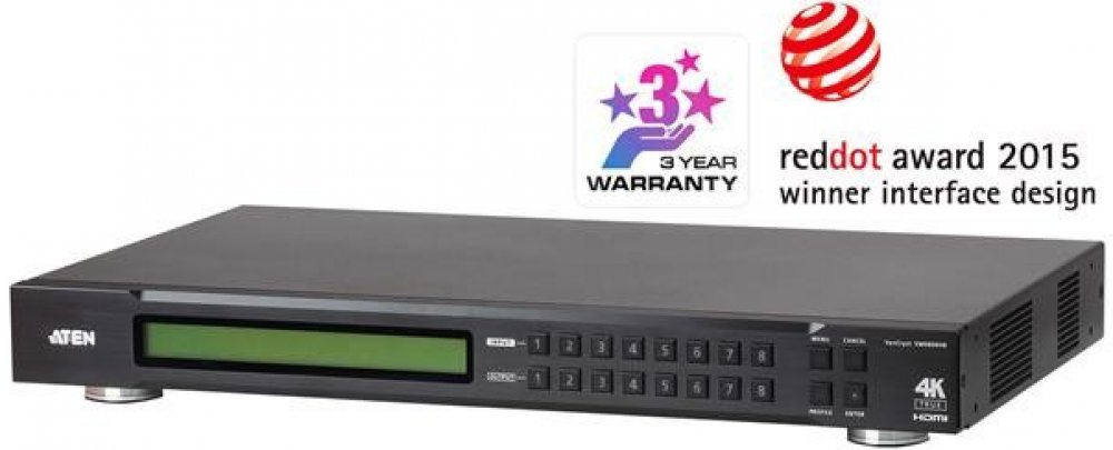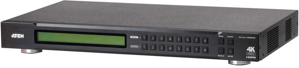 ATEN 8x8 port 4K HDMI matrix přepínač, přenos na větší vzdálenosti do 15m Umožní připojit 8 HDMI zdrojů k 8 HDMI zobrazovačům v jakékoliv kombinaci vstupů/výstupů. Vše v rozlišení až 4K. Připraven pro budoucnost videa s vysokým rozlišením. Přepínáč VM0808HA je ideální pro aplikace, kde je vyžadováno přepínání a směrování 4K digitálních signálů, například v učebnách, posluchárnách, obchodních domec...