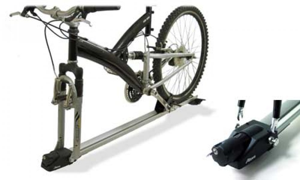 - Jednoduchý a stylový nosič s uchycením kola za přední vidlici. Nosič se skládá ze dvou částí. Do jedné uzamknete vidlici kola, ve druhé je usazeno zadní kolo, které je fixováno pevným textilním řemínkem s kovovou přezkou. Díky tomuto způsobu uchycení nedochází k poškození rámové trubky, které hrozí např. u karbonových či jiných tenkostěnných konstrukcí.