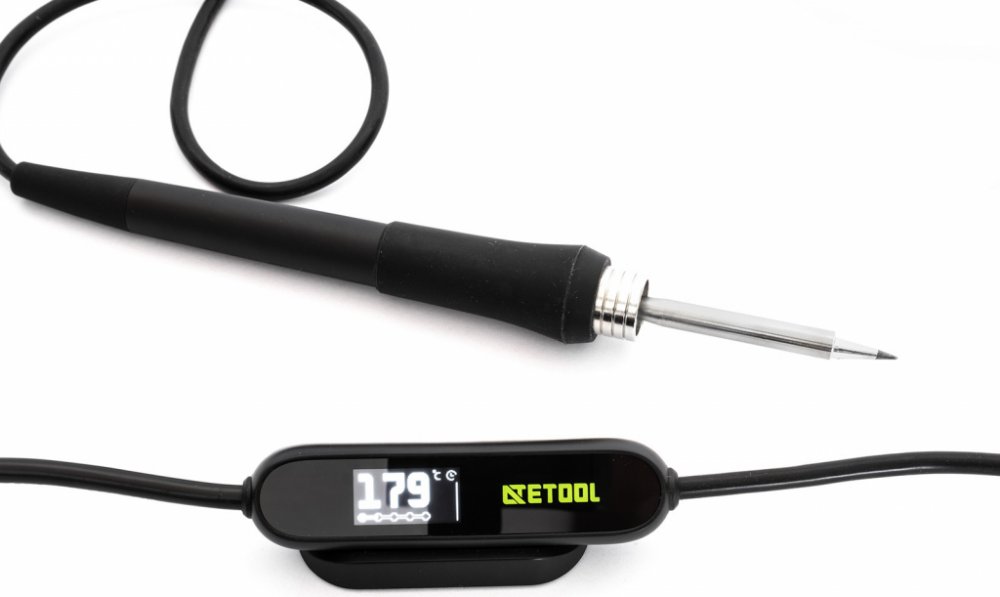 Mikropájka se skládá ze dvou pevně spojených částí, tou první je přívodní kabel s OLED displejem, který zobrazuje nastavenou teplotu, graf zatížení hrotu pájky, respektive spínání ohřevu hrotu dle zátěže při pájení, případně signalizuje funkce režimu automatického uspání, nebo snížení teploty. Druhou částí je samotné pero s velmi měkkým silikonovým přívodním kabelem, pero má na sobě tři tlačítka, která slouží k nastavení teploty a funkcí. Pájecí ručka je velmi lehká, dobře se drží i při dlouhém používání, díky velmi měkkému kabelu je práce s ručkou velmi komfortní. Součástí dodávky je speciální stojánek, který má na jedné straně oboustrannou lepící pásku, tou se přilepí k pracovnímu stolu, z druhé strany jsou magnety, které slouží k přichycení krabičky s displejem, díky magnetům lze s displejem natáčet tak aby byl displej dobře viditelný při práci.