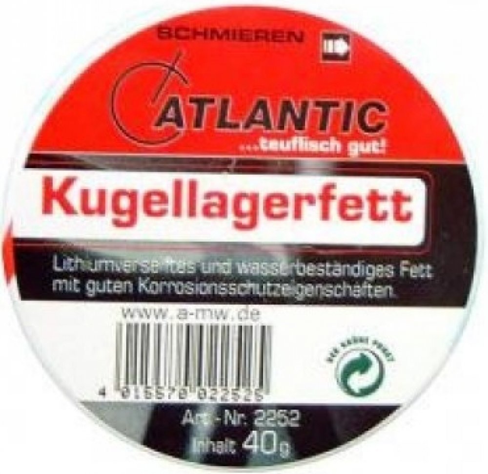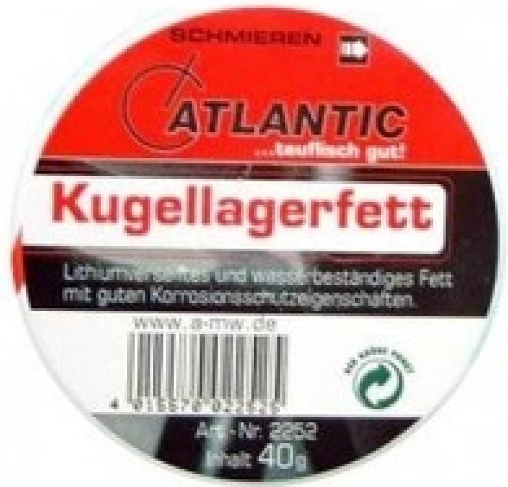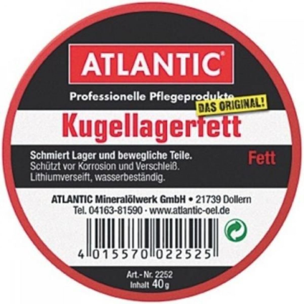 Vazelína ATLANTIC Kugellager Fett 40g Art.Nr: 2252 Vaselína na náby ATLANTIC zajišťuje dobré a dlouhodobé mazání kuličkových ložisek v hlavě řízení, v nábojích, ve středovém složení a ve všech pohyblivých částech. Je zmýdelněný lithiem, je voděodolný a má dobré antikorozní vlastnosti. Tuk s lithiem s výbornými mazacími a protikorozními účinky.Vhodný pro trvanlivé promazání hlavového složení, náby ...