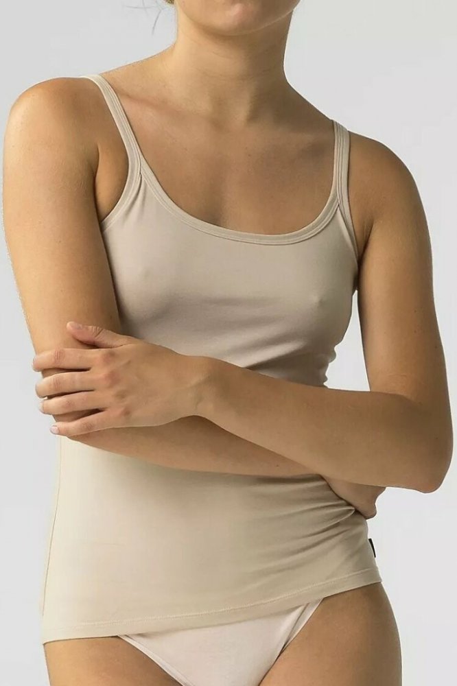 Lehká a pohodlná dámská košilka na úzkých ramínkách je ideální volbou pro ženy, které hledají spojení jednoduchosti a komfortu. Díky vysokému podílu bavlny je příjemná na dotek a skvěle prodyšná, elastan zase zajišťuje pružnost a dokonalé přizpůsobení postavě. Hladký materiál s plochými švy a jemným lemováním nikde netlačí a poskytuje maximální pohodlí při nošení. Košilka je univerzálním kouskem – můžete ji nosit samostatně během teplých dní, jako spodní prádlo pod košile či svetry, nebo ji využít jako součást domácího či nočního outfitu. Nadčasový střih a jednoduchý design z ní dělají základ šatníku, po kterém sáhnete každý den.