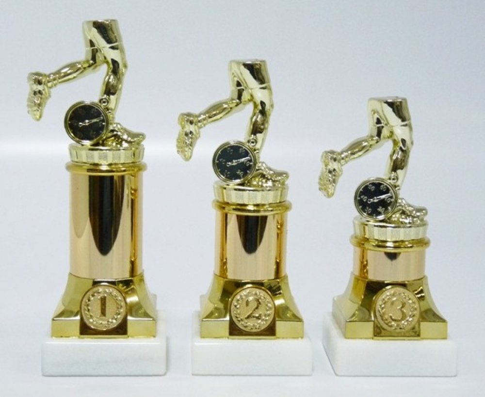 32-P038. Atletické trofeje s pořadím (viz.další foto). Výška za lomítkem kat.čísla. Při nákupu jedné sady trofejí (1,2,3) text na štítky napište jen do rubriky "štítek na" např. KRAJSKÝ PŘEBOR 11.11.2016 Kadaň a do součtu štítků zadejte 3 !!! Pokud objednáváte ve větším počtu a pro různé kategorie, zpracujte texty ve Vašem PC a přiložte jako samostatný soubor k tomu určený před uzavřením objednávk...