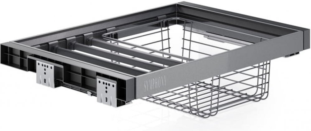 Výsuvný věšák na kalhoty s košem SYMPHONY - AntracitŘada SYMPHONYNejnovější řada SYMPHONY od ATM je exkluzivním doplňkem pro váš šatník nebo skříň. Produkty série SYMPHONY se vyznačují velmi vysokou kvalitou zpracování, důrazem na každý detail a především komfortem a potěšením z používání. Všechny produkty SYMPHONY jsou vyrobeny tak, aby Vám sloužily dlouhá léta a vybavili jsme je vodícími lištami...