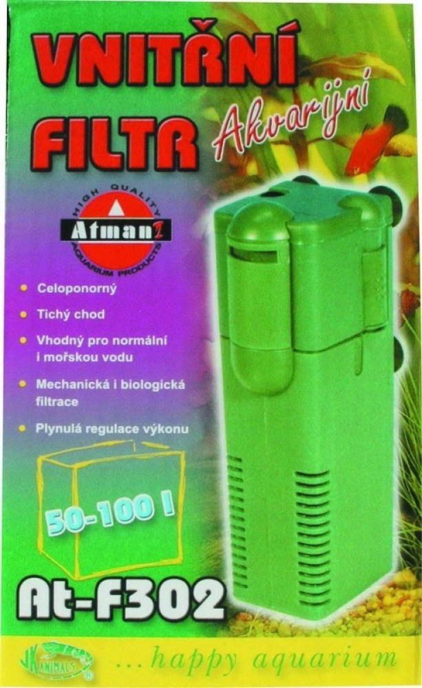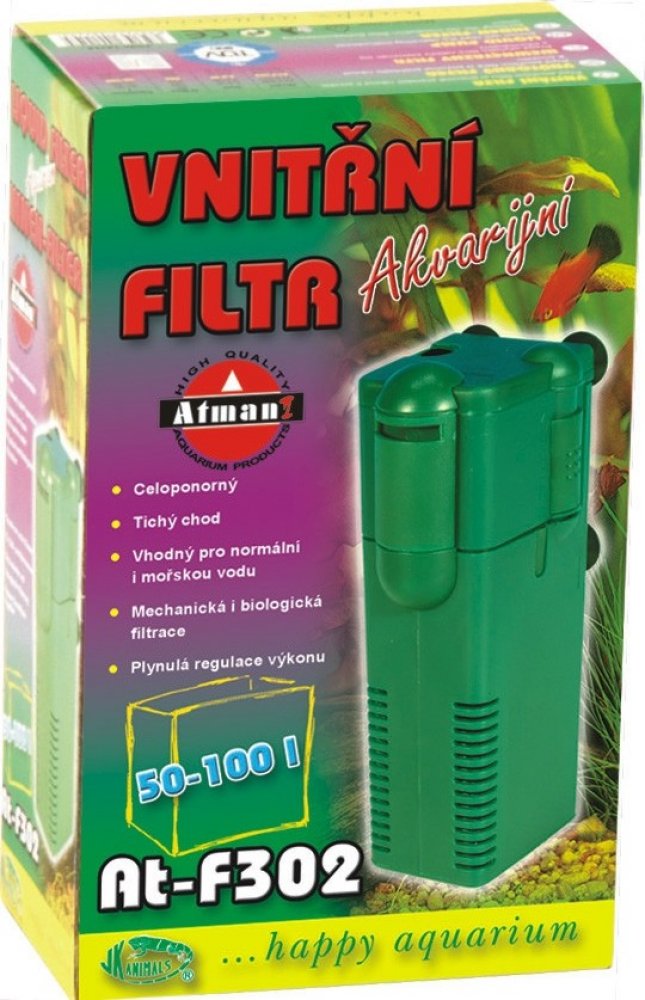 Správná filtrace je základní předpokladem dobře fungujícího akvária. Vnitřní filtry Atman čistí vodu mechanicky i biologicky přes polyuretano- vou pěnu. Všechny vnitřní filtry Atman jsou opatřeny regulaci průtoku s možností přídavného vzduchování. Zelené provedení filtrů nenarušuje vzhled uvnitř akvária. Vysoká kvalita použitých materiálů zaručuje dlou- hou životnost filtrů.