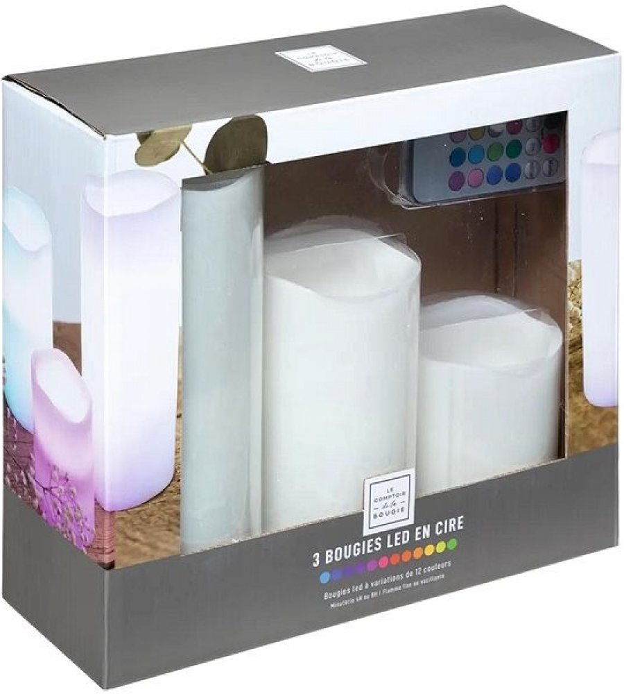 Sada LED svíček ATMOSPHERA vytvoří úžasnou barevnou atmosféru. Obsahuje 3 svíčky, které jsou vyrobené z vosku a osazené LED diodami, a dálkový ovladač. Pomocí ovladače můžete svíčky pohodlně zapnout či vypnout a zvolit některý z 12 barevných odstínů. Umožňuje také nastavení pevného či blikajícího plamene. Sada LED svíček ATMOSPHERA zaručí působivou atmosféru v každém interiéru. Klíčové vlastnosti LED čajové svíčky ATMOSPHERA LED sady 3 ksSada 3 LED svíček a dálkového ovladačeSvíčky jsou vyrobené z vosku a osazené LED diodamiPomocí ovladače lze svíčky pohodlně zapnout či vypnout a zvolit některý z 12 barevných odstínůUmožňuje také nastavení pevného či blikajícího plameneLED svíčky ATMOSPHERA jsou určené do interiéruRozměry svíček:20 × 7,5 cm14 × 7,5 cm9 × 7,5 cm Rozměry ovladače:8,5 × 4 × 0,6 cm