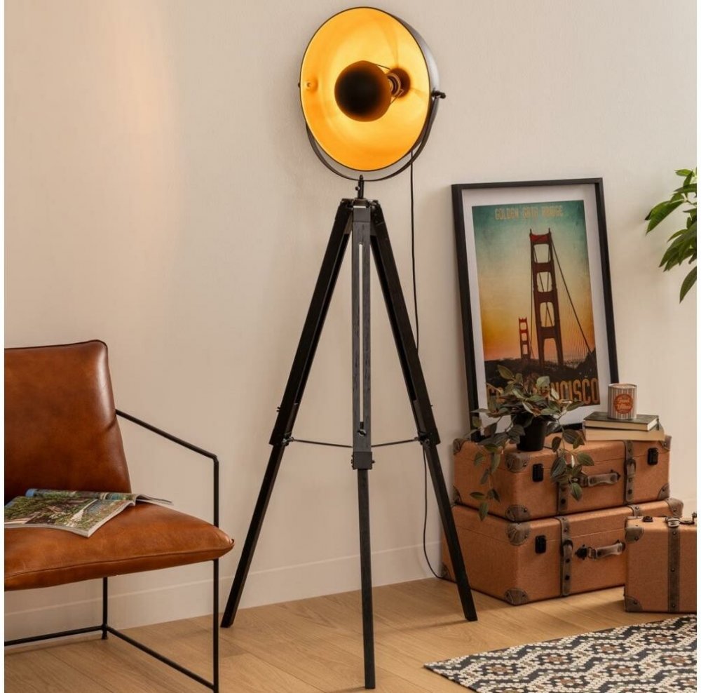 Stojací lampa trojnožková reflektorová 156,5 cm loft do obývacího pokoje černá
