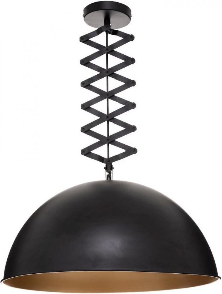 Vnitřní strana stínidla má tmavě zlatou barvu. Její povrch odráží světlo a dodává jí teplou a příjemnou barvu, která přispívá k relaxaci. Stropní svítidlo je napájeno z elektrické sítě. Můžete v něm nechat jakoukoli žárovku - led nebo klasickou - s maximálním příkonem až 25 W. Industriální lampa přímo z haly nebo bývalé továrny - za svůj osobitý vzhled vděčí stínidlu o průměru až 50 cm. Vnější povrch stínidla je rovnoměrně černý.