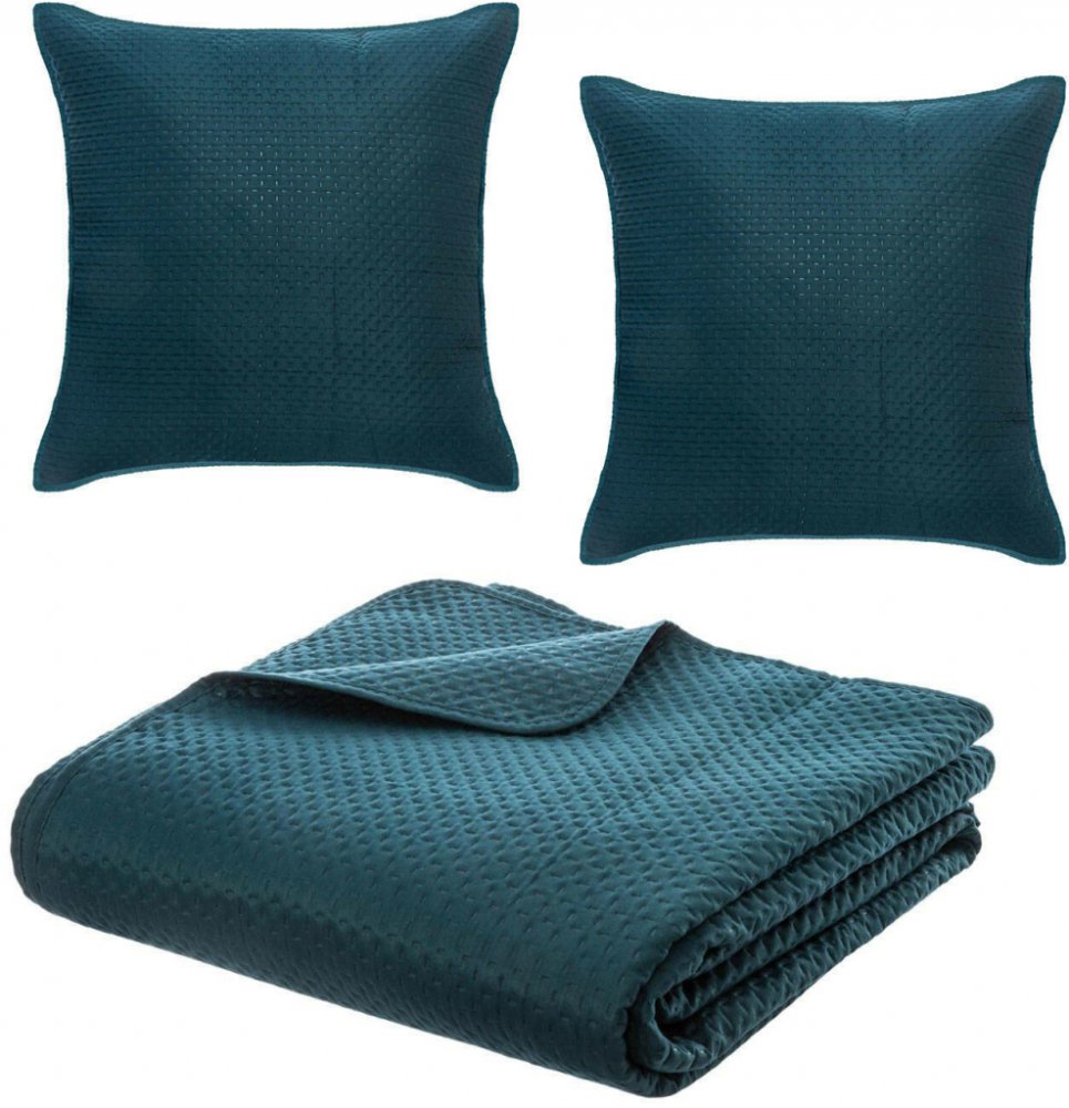 Chcete ve své ložnici nastolit řád a pořádek a věčně rozestlaná postel vám kazí vzhled ložnice? Chcete lůžkoviny ochránit před prachem a špínou? Pořiďte si tuto originální sadu. Krásným přehozem během okamžiku zastelete postel a ozdobíte ji dekoračními polštářky. Celá ložnice bude najednou vypadá úhledně a vynikne její elegantní charakter. V zimě Vám tento přehoz perfektně poslouží jako dodatečná přikrývka, kdy se do ní zachumláte během večerního odpočinku u televize nebo knihy. Příjemně poslouží také během krátkého regeneračního odpoledního spánku. Velký přehoz na dvojlůžko 240 x 260 cm je vyrobený z velmi kvalitního polyesteru v barvě hluboké mořské zeleně. Patří k němu dva povlaky na polštář 60 x 60 cm. Všechny prvky jsou ozdobené jemným prošívaným vzorkem.Vlastnosti produktu:Praktická ozdoba posteli v ložnici.V sadě jsou dva povlaky na polštáře sladěné s ozdobným přehozem. Elegantní a moderní barva mořské zeleně.Teplá přikrývka na chladné večery. Ochrání lůžkoviny před zaprášením.Přehoz: 260 x 240 cmPovlak polštáře: 60 x 60 cmPovlaky na polštáře: 2 ksBarva: MořskáMateriál: Polyester Přehoz DOLCE, 240 x 260 cm - stylová ochrana a pohodlíKlíčové parametry:Rozměry přehozu: 240 x 260 cmMateriál: polyesterMateriál: přehoz je součástí dodávky: složení: 2 povlaky na polštář 60 x 60 cmMódní barvaChrání ložní prádlo před prachem a nečistotamiPředstavujeme vám přehoz na postel DOLCE o rozměrech 240 x 260 cm, který nejenže vnese do vaší ložnice pořádek a čistotu, ale také účinně ochrání vaše ložní prádlo před prachem a nečistotami. Přehoz je vyroben z polyesteru příjemného na dotek a vyniká elegantním prošívaným vzorem, který se skvěle hodí do moderních interiérů. Jeho módní barva dodá charakter každé místnosti a vytvoří harmonické a stylové uspořádání.Přehoz DOLCE se bude skvěle hodit v chladnějších dnech, kdy bude působit jako hřejivý potah, který umocní chvíle odpočinku v posteli. Je ideální pro přikrytí při sledování filmu, čtení knihy nebo krátkém zdřímnutí a poskytuje pohodlí a útulnost. Součástí sady jsou navíc dva povlaky na polštáře o rozměrech 60 x 60 cm, které harmonicky doplňují celek.Estetika přehozu DOLCE z něj činí nejen funkční, ale také dekorativní prvek ložnice. Díky své univerzálnosti se bude dokonale hodit k různým designovým stylům, od minimalistického až po klasičtější. Výběrem tohoto přehozu investujete do kvality a stylu, které zvýší pohodlí vašeho každodenního života.Doporučujeme vám za si přehoz na postel DOLCE - je nejen praktickým řešením, ale také elegantním kouskem, který promění vzhled vaší ložnice. Užívejte si pohodlí a estetiku každý den! Rozměry: D 240 × H 260 × V 0,5 cm Čelo postele: D 240 × Š 260 cm Povlaky na polštáře: polštář - rozměry (cm) ; 60 x 60 délka (cm): ; 260 Dominantní barva ; mořská modrá Dominantní materiál ; polyester šírka (cm): ; 240 povlečení Duck blue 240x260 se 2 prostěradly 60 x 60 Toto povlečení elegantně oblékne vaši postel i pokoj. Díky svým velkorysým rozměrům se hodí na všechny postele pro 2 osoby. Rozměry: Rozměry: horní deska postele: Šířka 240 x šířka 260 cm Povlečení: Š. 60 x Š. 60 cm Barva: modrá kachna Materiál: polyester