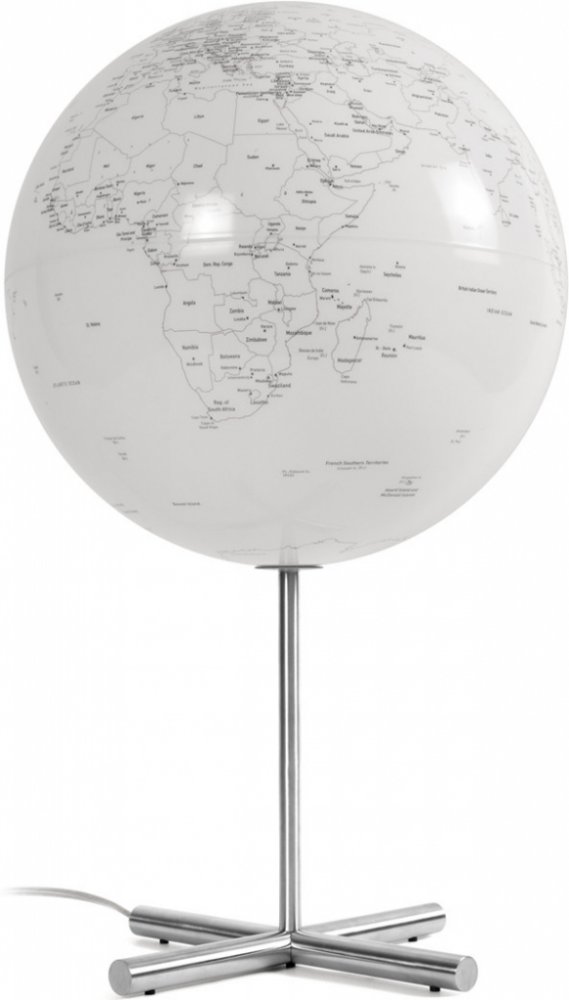 Jedná se o globus a zároveň o stolní lampu pro decentní přisvícení interiéru. Koule je mléčně bíla s velmi jemně vyznačenýmí kontinenty a státy. Osa a podstavec jsou vyrobeny z oceli a lampa se rozsvěcí pomocí táhla z ocelového lanka. Čím méně se globus hodí jako referenční či školní pomůcka, tím větší dojem udělá jako bytový nebo kancelářský doplňek v kombinaci s odpovídajícím interiérem.
