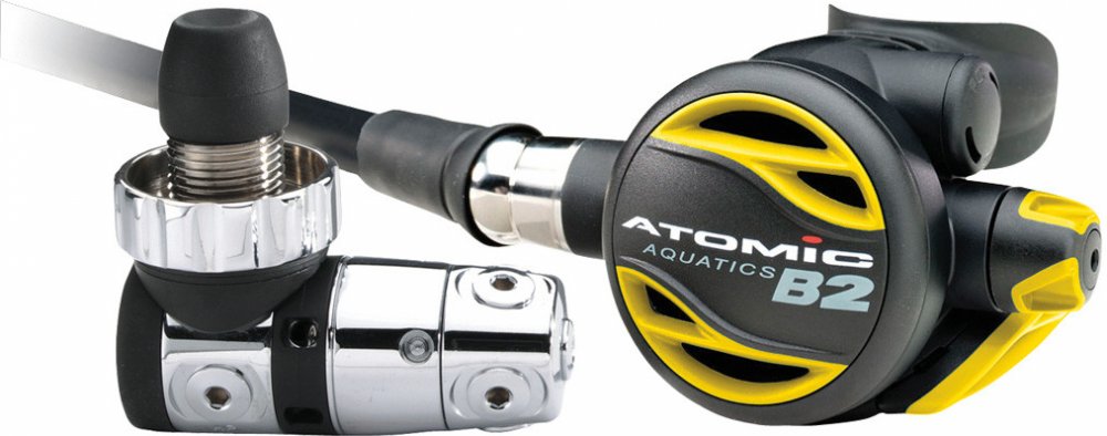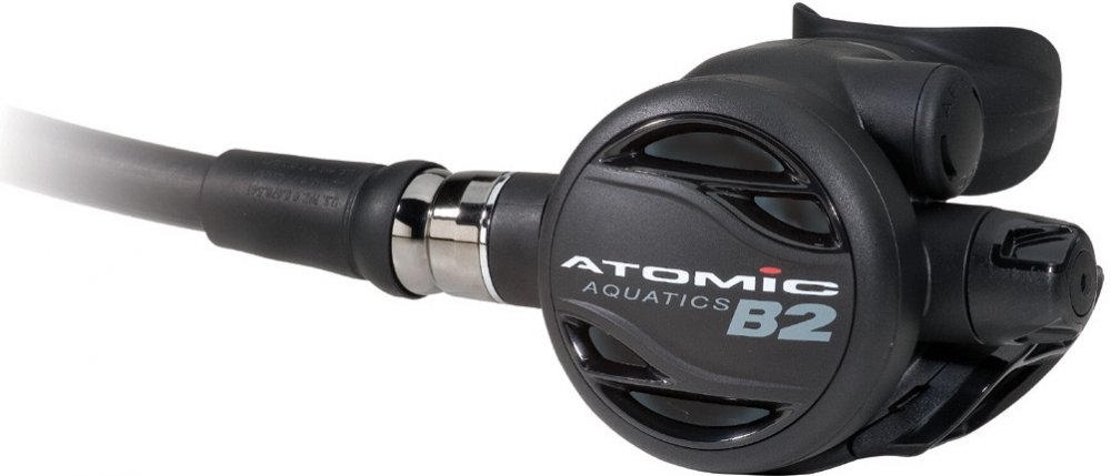Naprosto shodný výkon jako má T2x, s použitím mosazného prvního stupně. B2 je alternativou k celotitanovému modelu T2x. Nízká dechová práce, kterou se Atomic proslavil je identická. V designu B2 je kladen důraz na ergonomii. Zásadním konstrukčním rozdílem je pochromované mosazné tělo prvního stupně.