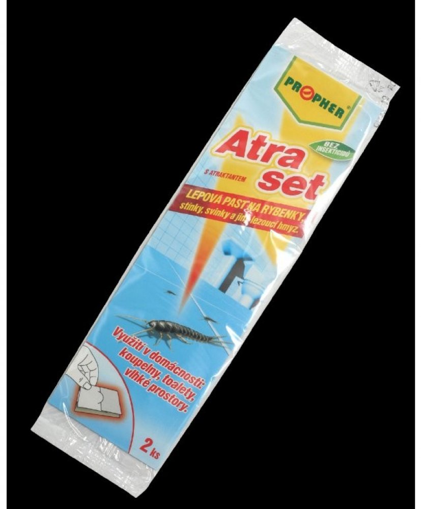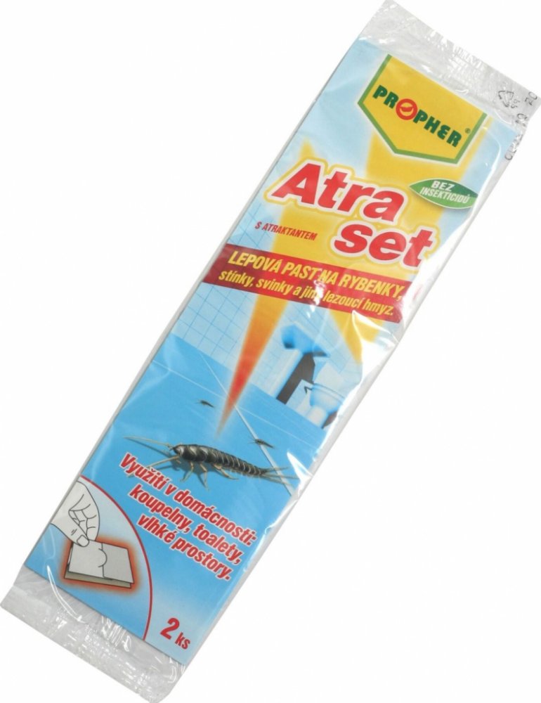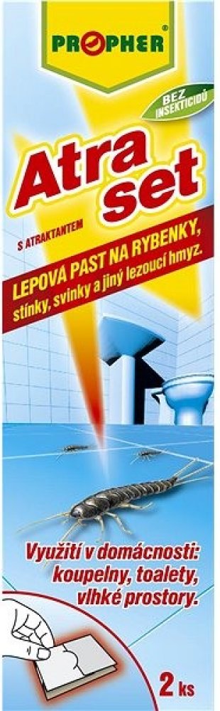 Ekologická lepová past s atraktantem na rybenky, stínky, svinky a jiný lezoucí hmyz pro využití v domácnostech: koupelnách, toaletách a vlhkých prostorech. Bez insekticidů. Je účinná minimálně tři měsíce.
