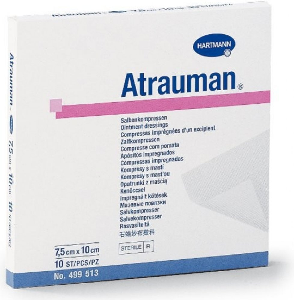Atrauman krytí s mastí představuje měkký hydrofobní polyesterový tyl s drobnými oky se základem masti bez účinných látek. Hladká povrchová struktura zamezuje slepení se spodinou rány. Chrání ránu před vysušením. Atrauman krytí s mastí představuje měkký hydrofobní polyesterový tyl s drobnými oky se základem masti bez účinných látek.