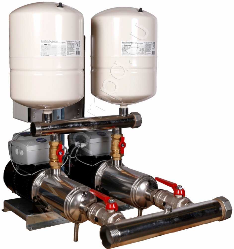 Automatická tlaková stanice obsahuje 2 paralelně zapojená horizontální nerezová odstředivá čerpadla. Každé čerpadlo je vybaveno frekvenčním měničem, který je umístěn na motoru. Konstrukční součásti, které jsou v kontaktu s čerpanou kapalinou, jsou vyrobeny z korozivzdorné oceli AISI 304.