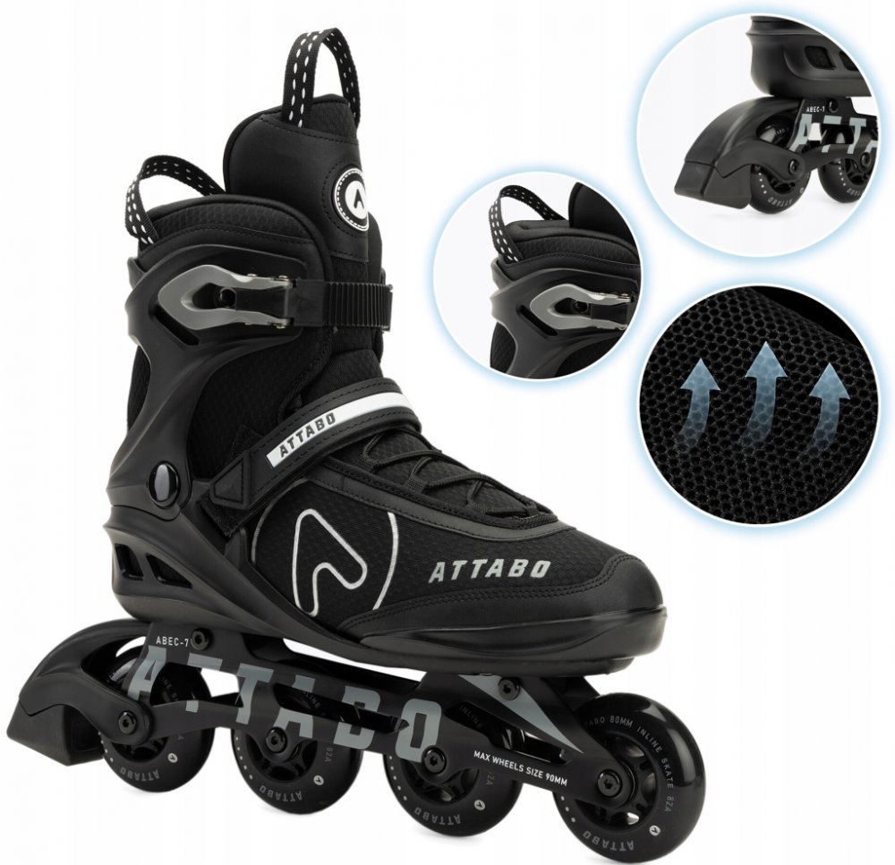 Kolečkové Brusle pánské ATTABO Bricker fitness černé LOŽISKA ABEC-7 ALUMINIOVÁ LIŠTA 45KOLEČKOVÉ BRUSLE ATTABO BRICKER FITNESS