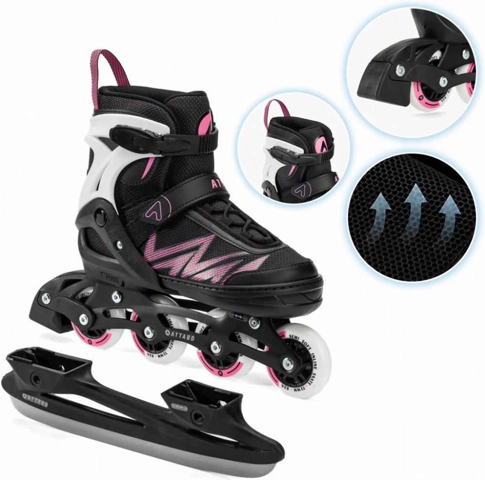 Dětské Brusle 2v1 ATTABO 2v1 Kylo se vyznačují mimořádnou funkčností , která nabízí možnost snadné přeměny z kolečkových bruslí na brusle na led . Díky této všestrannosti si děti mohou užít jízdu v létě i v zimě bez nutnosti mít dva samostatné páry vybavení. Výměna plazů je rychlá a intuitivní, díky čemuž je model Kylo ideální volbou pro mladé nadšence outdoorových sportů bez ohledu na roční období.
