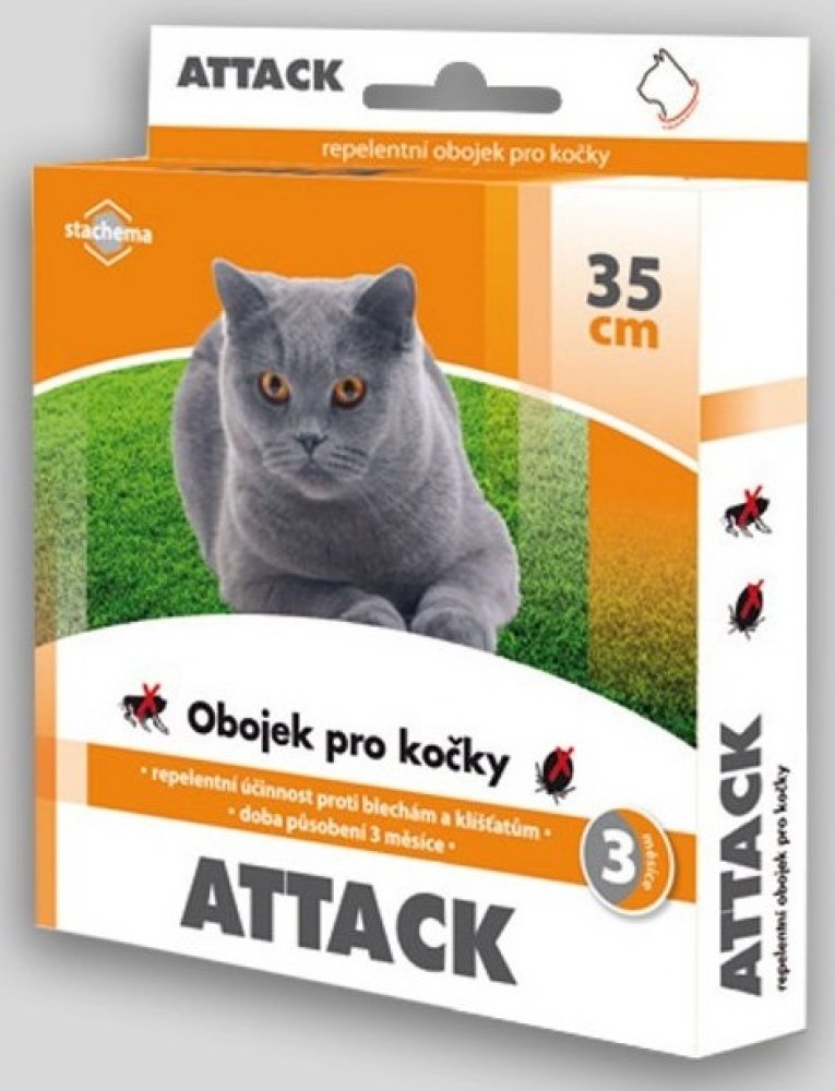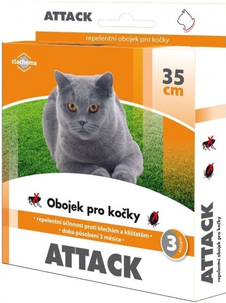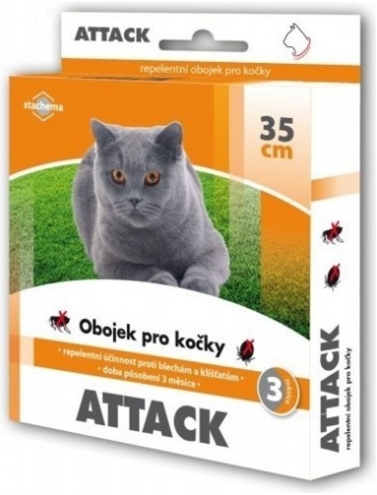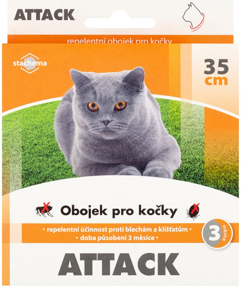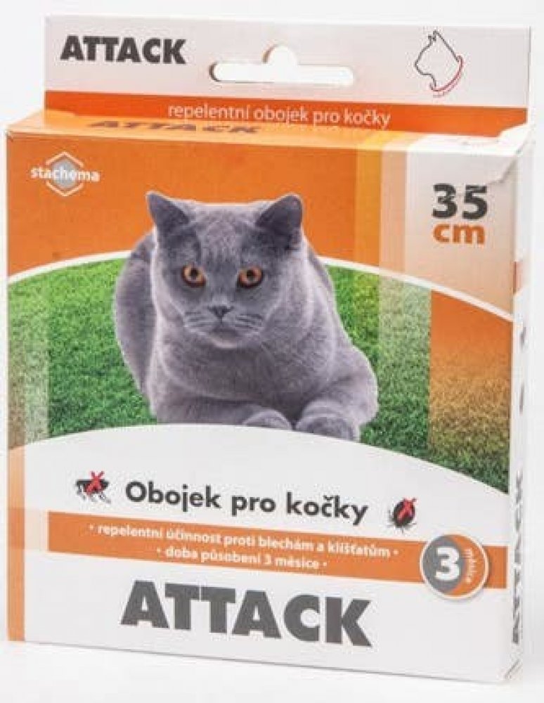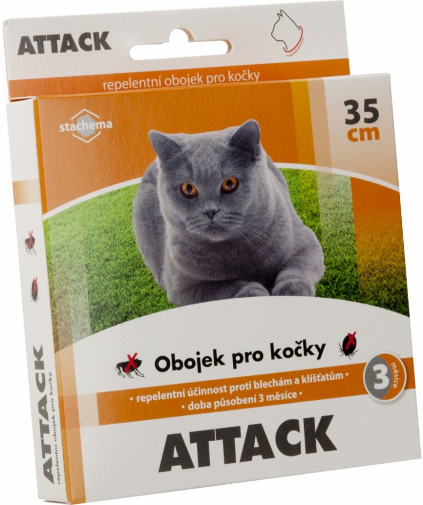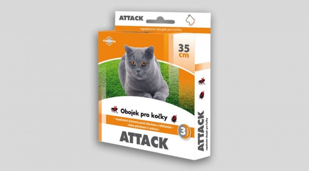 Attack je obojek na bázi geraniolu s výraznou repelentní účinností proti blechám a klíšťatům.