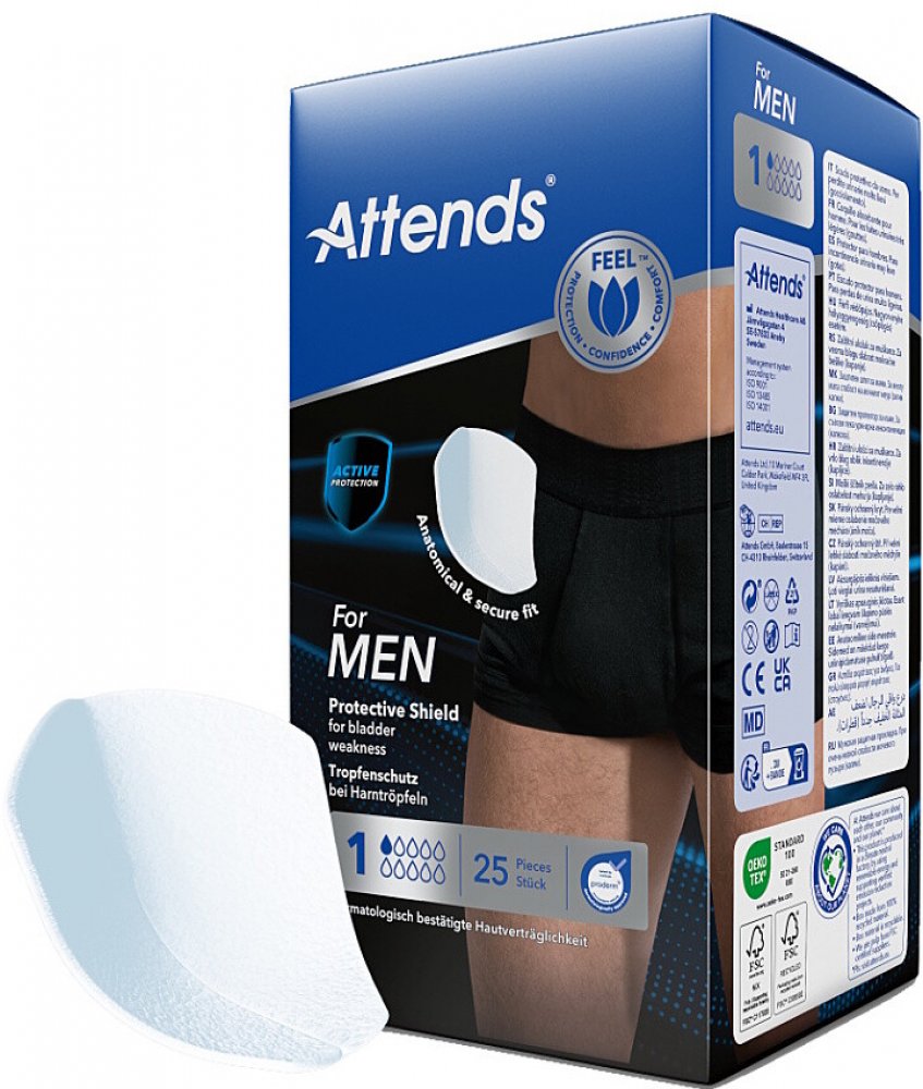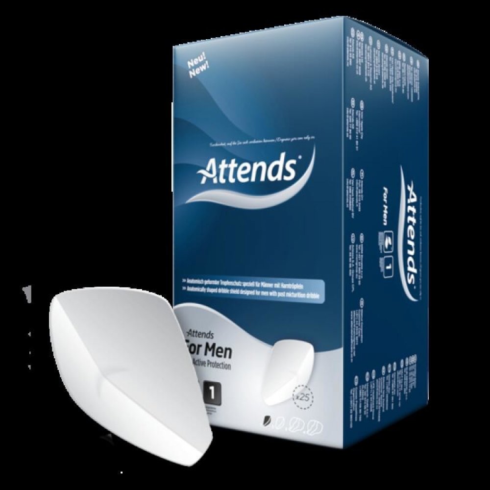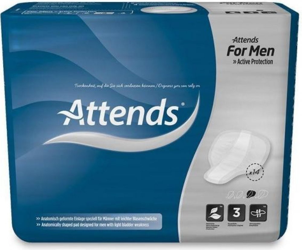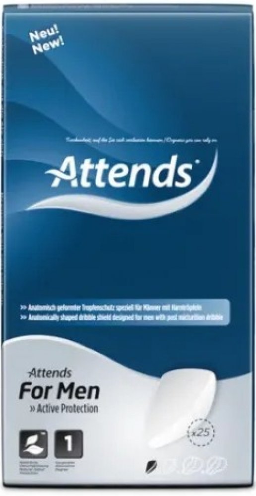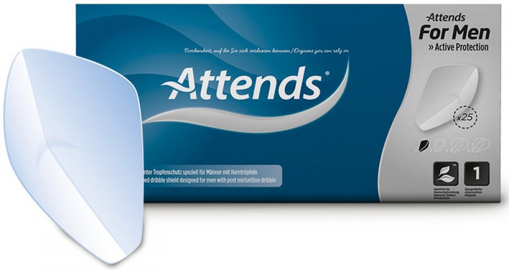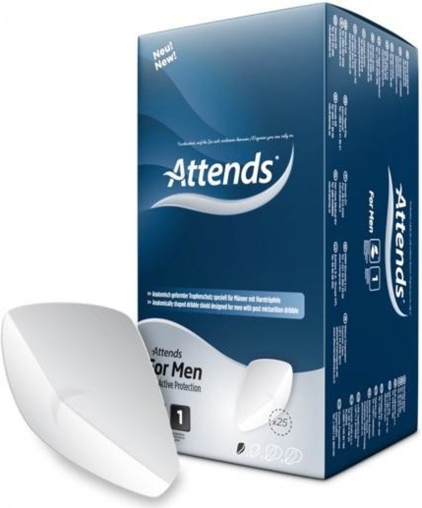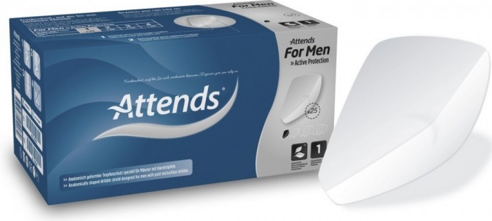 Vložky Attends For Men jsou anatomicky tvarované pomůcky určené pro lehkou inkontinenci u mužů nebo pro 'ukapávání'.