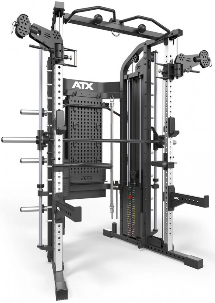 ATX Monster Gym 2.0 nyní přichází v ještě vylepšené podobě. Tento multifunkční stojan představuje špičku mezi domácími i profesionálními fitness zařízeními a nabídne vše potřebné pro komplexní silový trénink. Rovněž umožňuje nespočet variant cviků na minimálním prostoru, čímž vyniká nad většinou konkurenčních zařízení. Nová verze 2.0 je vybavena otočnými rameny s lanky, praktickou úložnou deskou, adaptérem pro vertikální leg press a bohatou sadou příslušenství. Samozřejmostí je splnění nejpřísnějších norem pro profesionální použití EN 20957 I.II.IV - S. Tento stroj je ideální volbou pro všechny, kteří hledají maximální variabilitu, výkon a kvalitu ve svém tréninku.