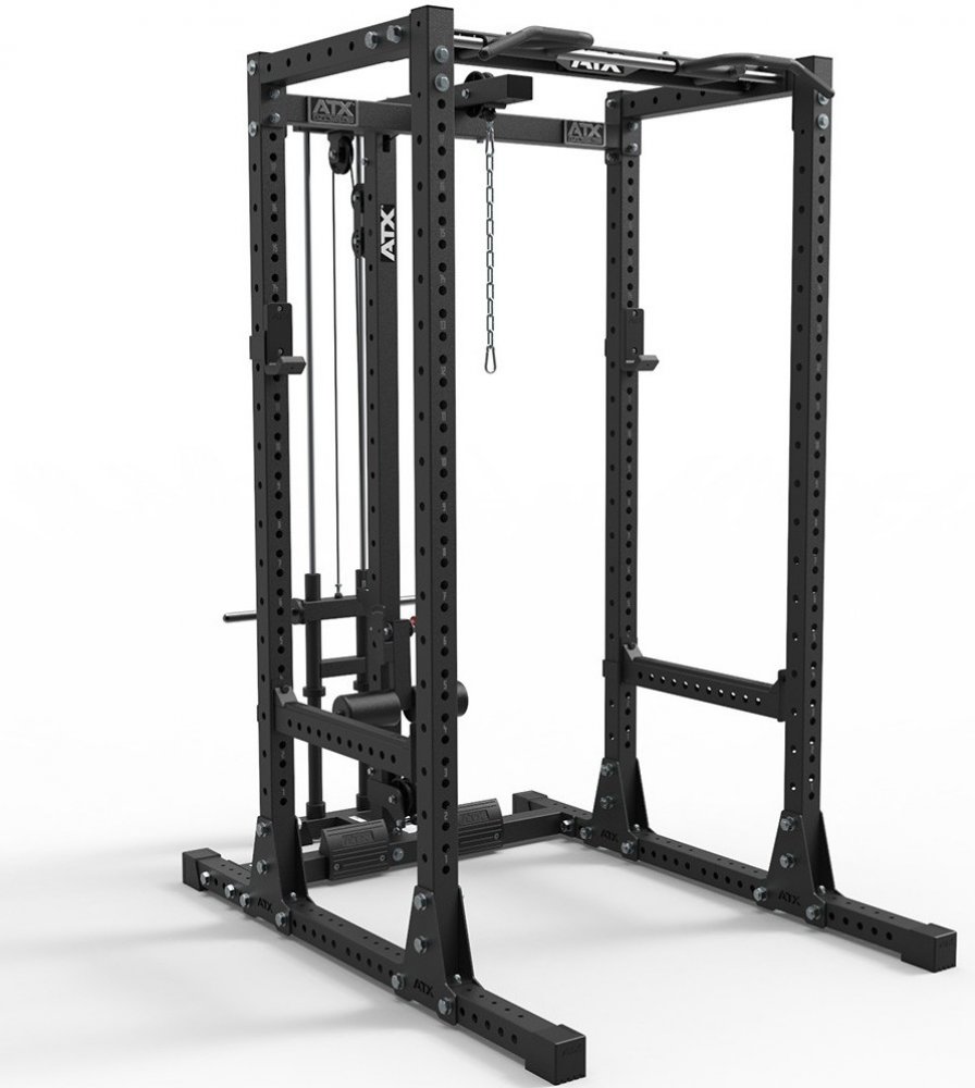 Power Rack ATX-750-SET-100 je extrémně stabilní a vysoce výkonná posilovací konstrukce. Masivní stojan se skládá z trubkové oceli o tloušťce 70 x 70 x 3 mm umožňuje extra vysokou nosnost až do 1500 kg! Díky šířce 123 cm a hloubce 178 cm je Power Rack extrémně stabilní a nabízí prostor pro maximální volnost pohybu. Sloupce stojanu s 35 otvory jsou opatřeny značkami pro přesné a rychlé umístění J-háků a nouzových zásobníků. Protiskluzová rýhovaná hrazda s multiúchopem nabízí řadu variant úchopů s průměrem úchopu 27 mm. Vysoká hmotnost 148 kg podtrhuje stabilní a pevnou konstrukci. Pogumované nožičky chrání podlahu a zvyšují odolnost proti skluzu. Stejně jako všechny ATX Power Racky, je PRX-750-SET-100 vyráběn podle nejvyšších standardů kvality s nejnovější plně automatickou technologií laserového řezání. Certifikován podle EN 20957 I. II. IV třída S. Pro rozšířený rozsah cvičení lze Power Rack rozšířit o další volitelné příslušenství.