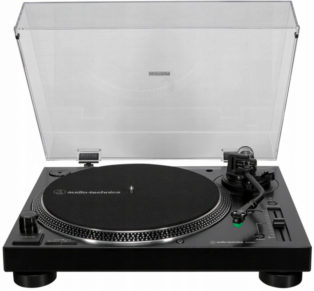 DJ gramofon s přímým náhonem AT-LP120X je pokračovatelem předchozí úspěšné série profesionálních DJ gramofonů s přímým náhonem a vysokým točivým momentem. Vhodný pro všechny DJ, kteří potřebují na své živé produkce spolehlivý a kvalitní nástroj. Konstrukce je vyrobena z odolného hliníku a vydrží i náročnější transport, raménko ve tvaru S s výškovým nastavením a nastavitelným závažím vám umožní mít plnou kontrolu nad dynamikou vaší hry. Gramofon disponuje USB portem pro připojení do PC, do kterého budete moct díky softwaru digitalizovat vaše oblíbené LP desky. AT-LP120X obsahuje univerzální headshell AT-HS6 s duálně magnetickou přenoskou AT-VM95E, lze však obě tyto součástky snadno vyměnit a přizpůsobit tak gramofon vašim potřebám a preferencím. Ovládací panel je navržen velmi intuitivně, při live performance vám tak nebudou tlačítka nijak překážet. Na panelu naleznete klasický Stop/Play button, ovladač přehrávače a fader pro úpravu hlasitosti. LP lze přehrát rychlostí 33-1/3 RPM, 45 RPM (adaptér je součástí balení) a 78 RPM. V balení dále naleznete stereo RCA kabel a protiprachový kryt. Gramofon je k dostání ve dvou barevných odstínech, vždy tak snadno zapadne do vaší moderně vybavené domácnosti. Součástí balení je gramofon, USB kabel, RCA kabel, protiprachový kryt, 45 RPM adaptér a napájecí adaptér.