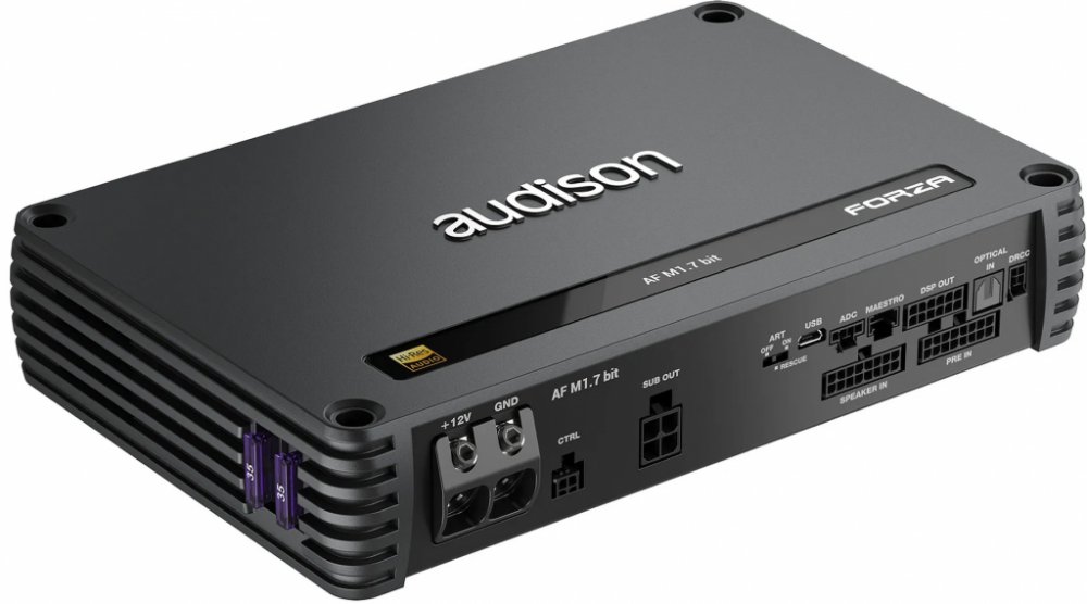 Zesilovač s DSP procesorem Audison AF M8.14 bit Audison Forza AF M1.7 kombinuje výkonný zesilovač třídy D se špičkovou technologií DSP. Tento zesilovač poskytuje 600 W RMS při 4 Ω, 1000 W při 2 Ω a 1200 W při 1 Ω – což odpovídá osvědčenému Forza AF M1D, ale přidává výkonný 24bitový, 96kHz DSP. Software bit Drive pro bit AF M1,7 obsahuje specifické algoritmy pro optimalizaci výkonu subwooferu v aut...