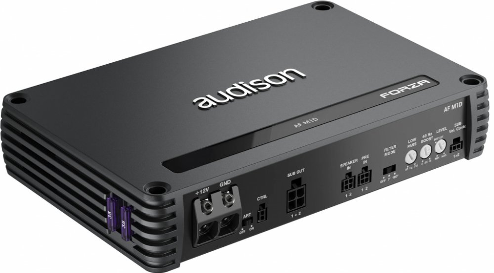 Zesilovač Audison AF M1D Zesilovače AF D jsou určeny k doplnění bitových zesilovačů AF o výkonné zesilovací kanály. Součástí balení je vstupní svazek plug-and-play, který usnadňuje připojení k bitovým zesilovačům AF. Zesilovače AF D jsou také ideální pro použití se systémy řízenými a spravovanými samostatným bitovým procesorem, jako je bit One HD Virtuoso. AF M1D se může pochlubit jedním vysoce věrným zesilovacím kanálem 600 W na 4 Ω, 1000 W na 2 Ω a 1200 W na 1 Ω s audiofilním zvukem nejnovější generace technologie Audison D-Class. Vyšší spínací frekvence, strmější filtrace a komponenty s vyšší tolerancí poskytují zvuk nad očekávání třídy D - v úžasně kompaktním balení! AF M1D je jediný z rodiny AF D, který lze používat i v samostatném režimu, a to díky sadě manuálních ovládacích prvků: - nastavitelný (a vypínatelný) dolnopropustný crossover filtr 4. řádu - přepínač polarity/fáze 0-180° - nastavení 45 Hz Bass Boost. Zkombinujte tyto funkce s ART DC zapínáním z vysokoúrovňových vstupů, USS zatížením reproduktorových vstupů a volitelným ovladačem úrovně VCR-S2 a tento zesilovač lze použít k přidání subwooferů i v systémech, které postrádají bitový zesilovač Audison AF! O značce Audison je italská značka s tradicí od roku 1987. Jejím cílem je vyrábět tu nejlepší mobilní elektroniku na světě a pokračovat v inovativním stylu. Reprodukce zvuku byla vždy fascinujícím světem, kde se spojují emoce a technologie. Nejlepšího výsledku je dosaženo tehdy, pokud jsou tyto dvě hodnoty na svém vrcholu. Díky této kombinaci se každý projekt, který Audison vyvíjí a vzniká tímto přirozeným postojem čerpajícím z lásky k hudbě a vnitřní potřeby, zpochybňuje dosavadní standardy. Od představení prvního zesilovače HR 100, vedlo značku Audison vytvořit produkty, které skutečně poznamenaly historii automobilového hi-fi. V Audisonu jsou neochvějně oddaní výzkumu, který vede k dokonalosti reprodukce zvuku ve vozidlech. Audison je průkopníkem inovací a nespokojí se s ničím menším než s dokonalostí v každém produktu, který uvádí do života. Inovace je něco, co narušuje standardní proces a vyžaduje náročný přístup, který přesahuje běžná řešení, která si osvojují všichni ostatní. Zde se projevuje podstata značky Audison. Inovace formují celý proces návrhu, začínají koncipováním audio produktů do auta, které poskytují jedinečnou hodnotu a zlepšují zážitek z poslechu hudby v autě. Audison neustále posouvá technologické hranice a registruje si desítky patentů. Akustická kvalita totiž nemůže přijímat kompromisy!