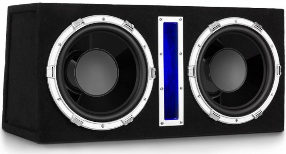 auna Basswaver X12L je aktivní subwoofer do auta se skvělými výkonnostními hodnotami a impozantním vzezřením. Dva 30 cm (12 ") basové reproduktory zaplní místnost bohatým akustickým tlakem, který zesiluje nerezonující, basreflexní konstrukce. Proto subwoofer nabízí s lehkostí výkon 1200 W (3 x 300 W RMS). Zabudovaný zesilovač nabízí kromě velké výkonnostní rezervy i nastavitelnou dolní propust a zapínatelnou dělící frekvenci na optimální vyladění zvuku podle vlastních požadavků. Mimořádná přednost spočívá v zadním 3,5 mm jack vstupu na přímé přehrávání hudby z externích nosičů, jako např. MP3 přehrávačů, smartphonů nebo tabletů. Nízko- a vysoko úrovňové porty zároveň umožňují připojení subwooferu k různým audio komponentům. Kromě skvělého zvuku aktivní subwoofer Auna Basswaver X12L triumfuje i atmosférickým LED osvětlením, díky kterému skutečně vyniknou všechny jeho pozitivní stránky.
