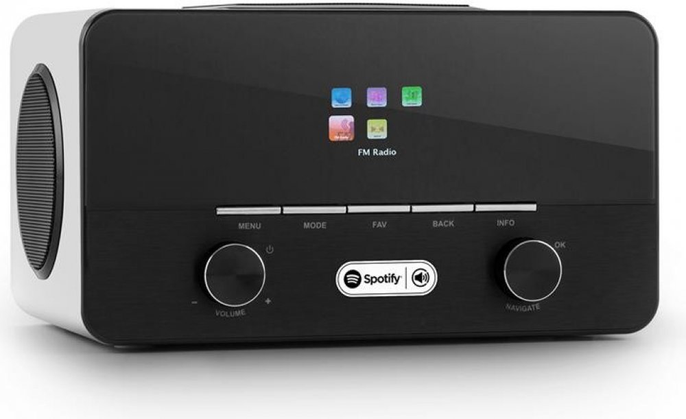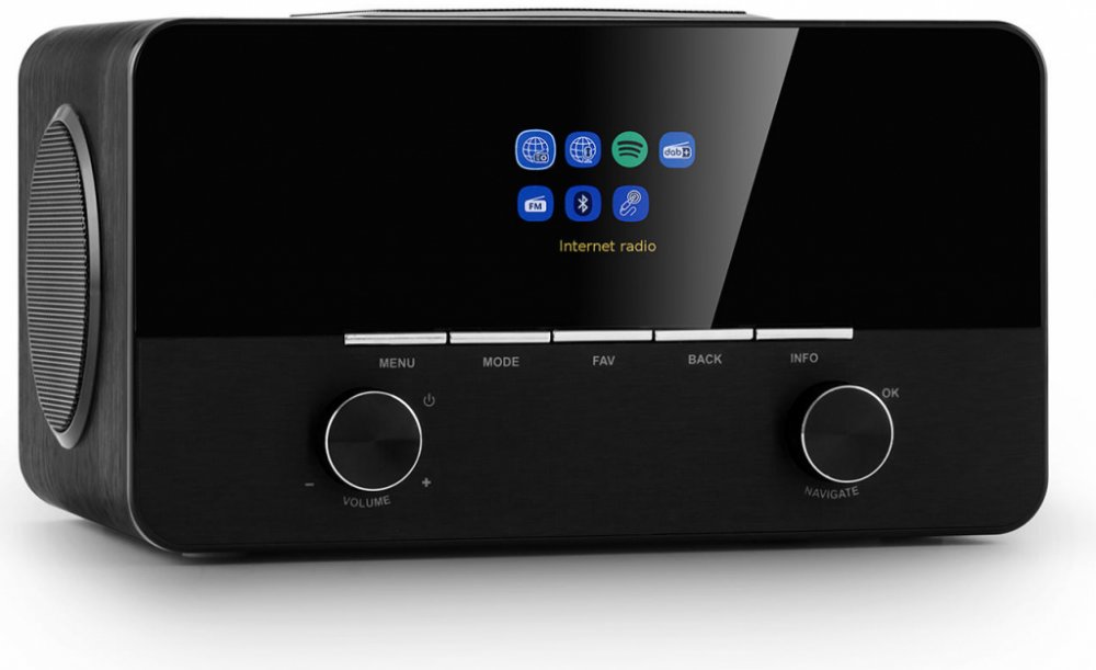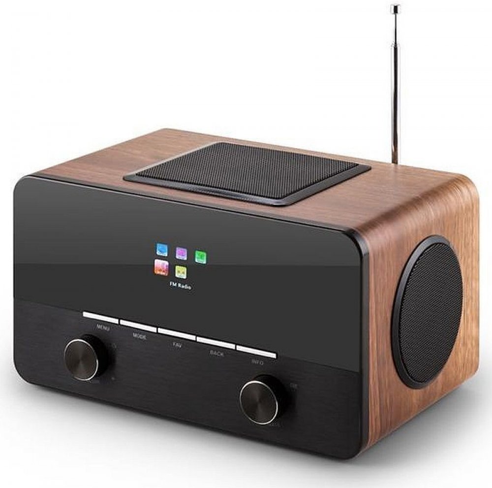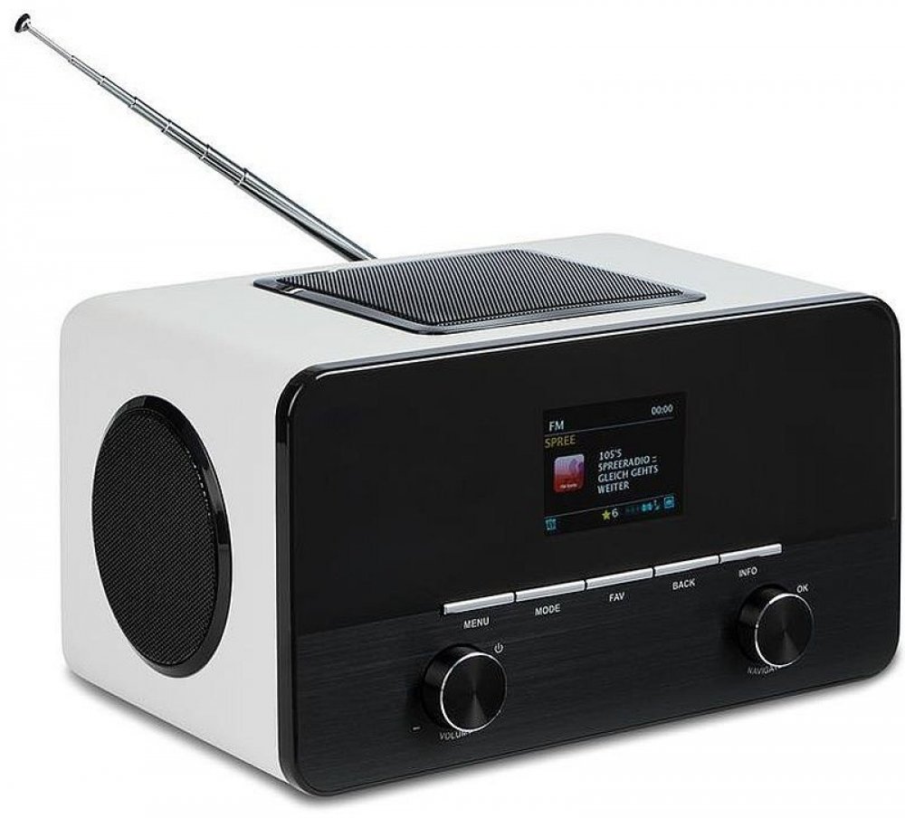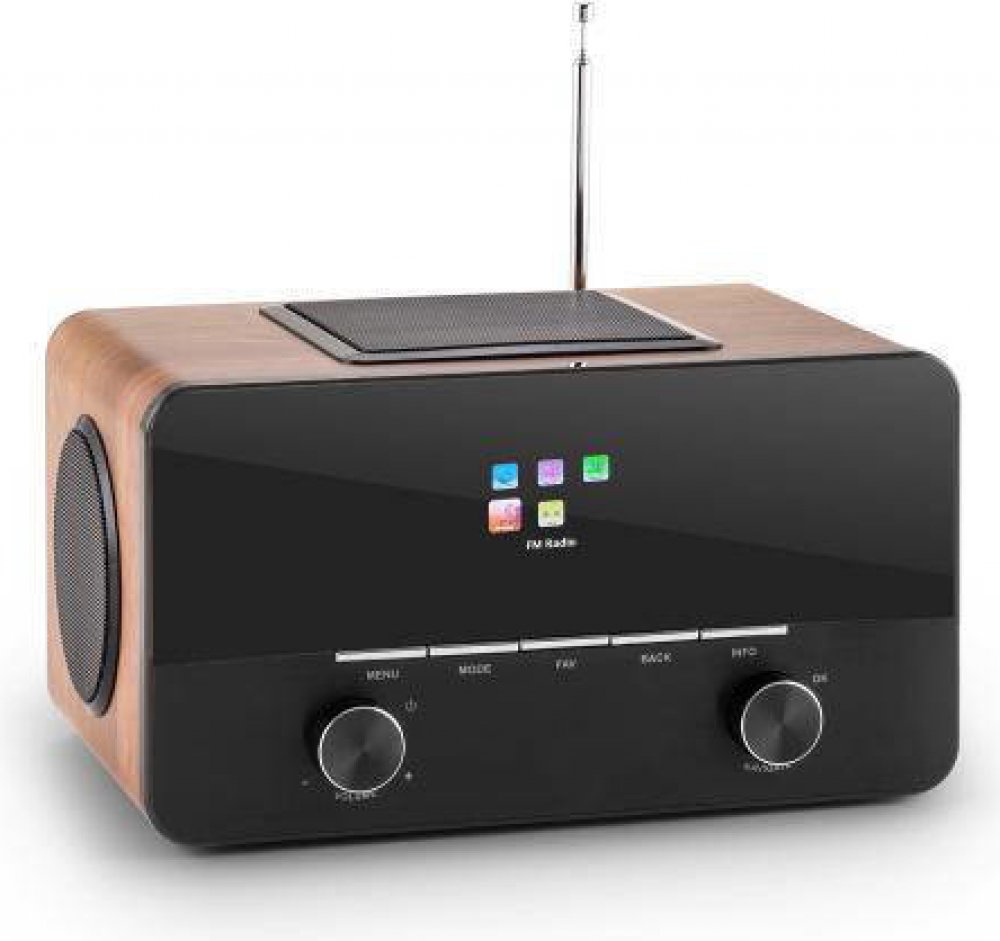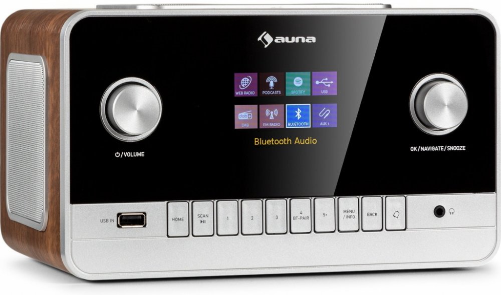 Oduševnění dokazuje Connect 150 prostřednictvím Wi-Fi a LAN rozhraní, které na jedné straně umožňuje kabelový i bezdrátový příjem různých radiostanic a na druhé straně použití jako internetový přehrávač. Tak je například možné streamovat vlastní hudební archiv z počítače. K další výbavě patří DAB / DAB + rádiotuner jakož i analogový FM přijímač. RDS funkce Vás informuje o užitečných doprovodných informacích, jako jsou jméno interpreta, název, album, žánr nebo i zprávy. Prostřednictvím zadního USB portu můžete rychle a jednoduše napojit hudební skladby ve formátu MP3. AUX vstup k připojení externích zařízení jako mobilní telefon, MP3 přehrávač či notebook se nachází na zadní straně zařízení. Odborné ozvučení mají na starosti dva boční 6,5 cm (2,5 '') širokopásmové reproduktory, které podporuje i horní 8 cm (3 '') bass reproduktor. Tak vzniká rozsáhlý a dynamický zvukový obraz s 2 x 3 W + 1 x 14 W RMS výkonu, který může být zesílen přes externí Hi-Fi věž či jiný přístroj prostřednictvím linkového výstupu. Prostřednictvím nastavení a samostatně nastavitelnému Dvoupásmový ekvalizér se dají vylepšit eventuální chyby a cíleně zesílit oblíbené skladby. Díky přehlednému 6,5 cm (2,5 '') FTF displeji s podsvícením máte vždy na dohled informace o čase, názvu interpreta a rádio stanici. Další zvláštností jsou rozsáhlé funkce buzení s nastavitelným alarmem a programovatelným intervalem. SleepTimer a funkce krátkého spánku zaoblují funkční rozsah zařízení. Díky kompaktním rozměrům je možné Auna Connect 150 radiobudík uložit na noční stolek, regálovou poličku nebo do kuchyně. Dá se pohodlně ovládat prostřednictvím dodávaného dálkového ovládání. Dostupné varianty: bílá, oříšková (10028154).
