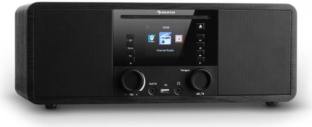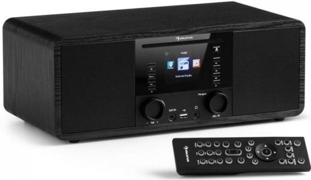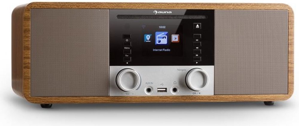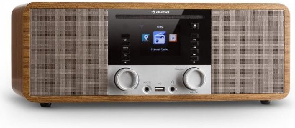 Internetovým rádiem IR-190 přivádí Auna koncept příjmu stanic z celého světa k naprosté dokonalosti. Rádio připojené k domácí WLAN síti otevírá přístup k tisícům stanic na celém světě. Nezáleží na tom, jestli máte rádi rock, pop, jazz nebo klasickou hudbu, pomocí rádia IR-190 určitě najdete stanici přesně podle vašeho vkusu nebo mateřského jazyka. Úložná paměť až pro 250 stanic lze jednoduše ovládat na digitálním displeji nebo na počítači, který je připojen do stejné sítě. Bezdrátové připojení umožňuje přehrávání širokého spektra formátů: MP3, AAC, AAC +, WMA a FLAC. Stejným způsobem podporuje i přehrávání titulů z přístrojů s podporou DLNA. Prostřednictvím bluetooth k rádiu snadno připojíte váš smartphone, tablet nebo notebook. Na kabelové připojení slouží jeden 3,5 mm AUX jack vstup, čímž rádio značně rozšiřuje rozsah připojitelných zařízení. Pokud však budete mít chuť na klasiku, k dispozici je i FM přijímač s úložnou pamětí pro 20 oblíbených rádiových stanic. CD přehrávač i USB port podporují přehrávání MP3 titulů a jiných formátů. Rádio obsahuje ekvalizér, kterým můžete hudbu přizpůsobit vlastním požadavkům. Sluchátkový výstup ve formátu 3,5 mm jacku umožňuje diskrétní poslech hudby bez rušení sousedů nebo kolegů. Rádio se ovládá buď na tlačítkovém panelu, nebo dálkovým ovladačem přímo z gauče. Stejně je k dispozici i ovládání přes aplikaci na smartphonu. Na displeji se ovládají všechna nastavení. Ten, kdo večer před spaním rád poslouchá hudbu, určitě ocení funkci odloženého vypnutí. A ráno vás rádio i vzbudí - nabízí totiž i funkci budíku. Můžete si dopřát i krátkého šlofíka, jelikož zařízení nabízí funkci nastavení krátkého času buzení v rozmezí 5 až 120 minut. Stylový retro design dřevěné konstrukce a zrcadlící se přední plocha zapadne do každého stylu zařízení bytu. Kompaktní rozměry předurčují rádio na noční stolky, na police nebo pracovní stoly. Dostupné barvy: černá (produkt: 10032014), ořech (10032012)