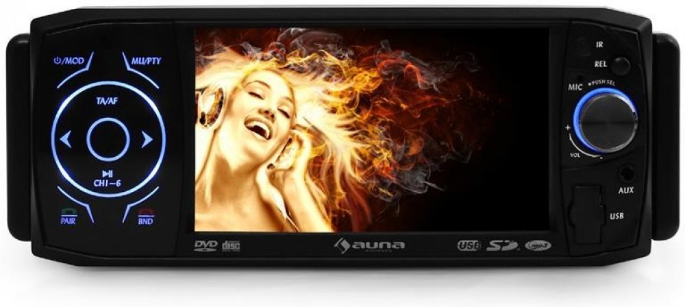 Auna MVD-420 je autorádio podporující mnohé formáty s četnými možnostmi připojení i přehrávání. 11 cm (4,3 ") velký, křišťálově čistý dotykový displej se rozsvítí na povel na těle hlavního zařízení a díky intuitivní nabídce menu umožňuje rychlé přizpůsobení obrazovky, zvuku a přehrávání i přepínání mezi jednotlivými zdroji zvuku.Vyzvednout je třeba především zabudované rozhraní bluetooth, které po nekomplikovaném propojení s bluetooth zdroji, jako smartphone, laptop nebo PC dongle, přebírá službu streamování hudby nebo zaměřuje svou pozornost na využití v roli handsfree. Díky mikrofonu zabudovanému v předním panelu nejsou zapotřebí žádné další nákupy.Kromě povinného FM/AM rádiového přijímače s 30 předvolbami stanic zabudovali tvůrci ze společnosti Auna do zařízení všestranný multimediální přehrávač, který kromě DVD a CD disků jednoduše přehrává i moderní mediální formáty jako MP3, MPEG-4 a DVD. Obrazový signál se přehrává na 11cm (4,3") displeji s dobrými obrazovými vlastnostmi a může být odeslán na další zobrazení prostřednictvím video výstupu. Ideální na to, aby mohli i cestující na zadních sedadlech sledovat film na externí obrazovce.Kromě skrytého SD slotu nabízí Auna MVD-420 i video vstup, který můžete použít například k připojení herní konzole, a také další vstup, kterým je možné přivádět signál ze zpětné kamery. Prostřednictvím odpovídajících linkových výstupů se autorádio připojuje k 2- nebo 4kanálovým zesilovačům pro dosažení vyšší úrovně výkonu.