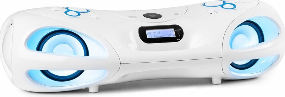 Auna Soundblaster M boombox je barevným společníkem pro pozdní párty. Současné zaměření přehrávače spočívá v kvalitním CD přehrávači, který přehrává běžné CD disky s WAV nebo MP3 soubory. Také disponuje USB a SD sloty pro přehrávání hudby z externích paměťových zařízení. V rámci všech médií lze sestavit playlist: 20 písní z CD a 99 písní v MP3 formátu. Samozřejmostí je opakované přehrávání jedné p...