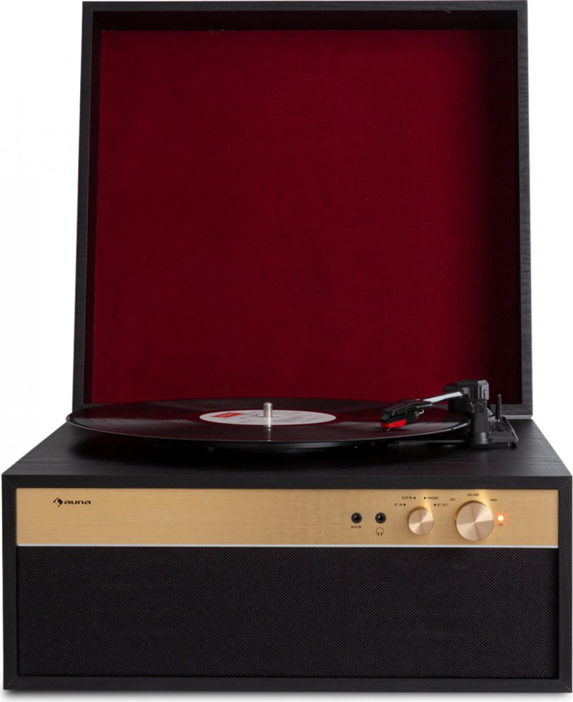 Nostalgický designový highlight, který skutečně a stylově roztočí vaši sbírku vinylových desek: luxusní gramofonový přehrávač Berklee TT Case od společnosti auna je skvělý ale malý poutač pohledů v místnosti a překvapí vás se skvělým hudebním zážitkem. Díky 45 otáčkovému adaptéru můžete ve vysoké kvalitě přehrávat vaše oblíbené desky i single s rychlostí 45, 33 1/3 nebo 78 otáček za minutu. Ale tím nekončíme: kromě užívání si vaší sbírky vinylových desek můžete díky gramofonu na nožičkách dokonce poslouchat digitální hudební soubory. Přes Bluetooth jednoduše připojte PC, tablet nebo přes AUX-In připojte chytrý telefon nebo jiná zařízení pro přehrávání nebo ukládání. Setkává se odvážný design a audio technická rafinovanost, reproduktory jsou zabudovány přímo v zařízení a gramofon v dřevěném těle můžete používat buď s nožičkami, nebo bez nich. Zavřením krytu ochráníte vaše kvalitní hudební skvosty před každým smítkem prachu. Hýčkejte oči i uši: kvalitní gramofonový přehrávač Berklee TT Case od společnosti auna přesvědčuje velmi luxusním vzhledem a z vašich vinylových desek vytáhne ten nejčistší zvuk.