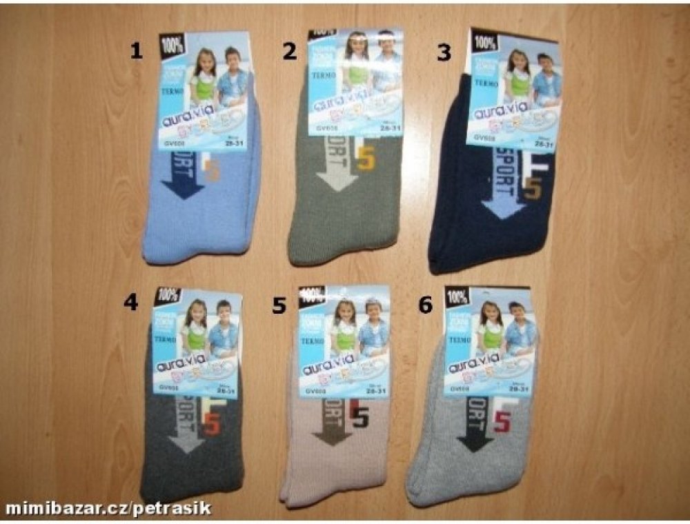 PRODEJ PO KUSE!!!! Chlapecké TERMO ponožky AURA VIA GV608. Velikosti 24-27,28-31, 32-35 95%bavlna, 2%polyamid, 3% elastan.