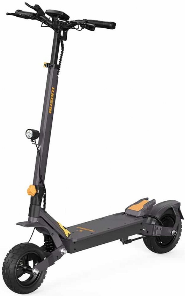 Elektrická koloběžka Ausom L1 ve stylové kombinaci šedé a žluté barvy nabízí skvělý poměr mezi výkonem, komfortem a bezpečností. Díky silnému 800W motoru, kvalitní konstrukci a inteligentním funkcím je ideální volbou pro každodenní městské jízdy i náročnější terény.