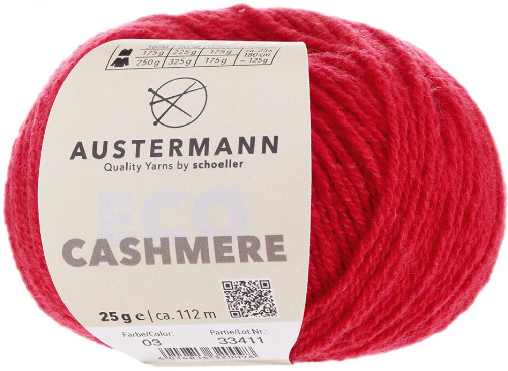 Austermann ECO CASHMERE - 100% kašmír - Ručně pletací příze Barva: 03 ROT