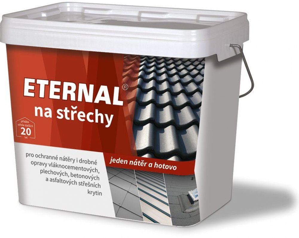 Eternal na střechy je určen k údržbě střešní krytiny z vláknocementu, betonových a neglazovaných pálených střešních tašek a dřevěných šindelů na střechách se sklonem minimálně 10°. Eternal na střechy po zaschnutí vytváří vodotěsný nátěrový film s vysokou přídržností k podkladu, dlouhodobou životností, odolný UV záření a trvale pružný i při nízkých teplotách. Pomocí nátěrové hmoty Eternal na střech...