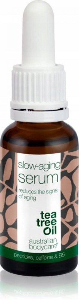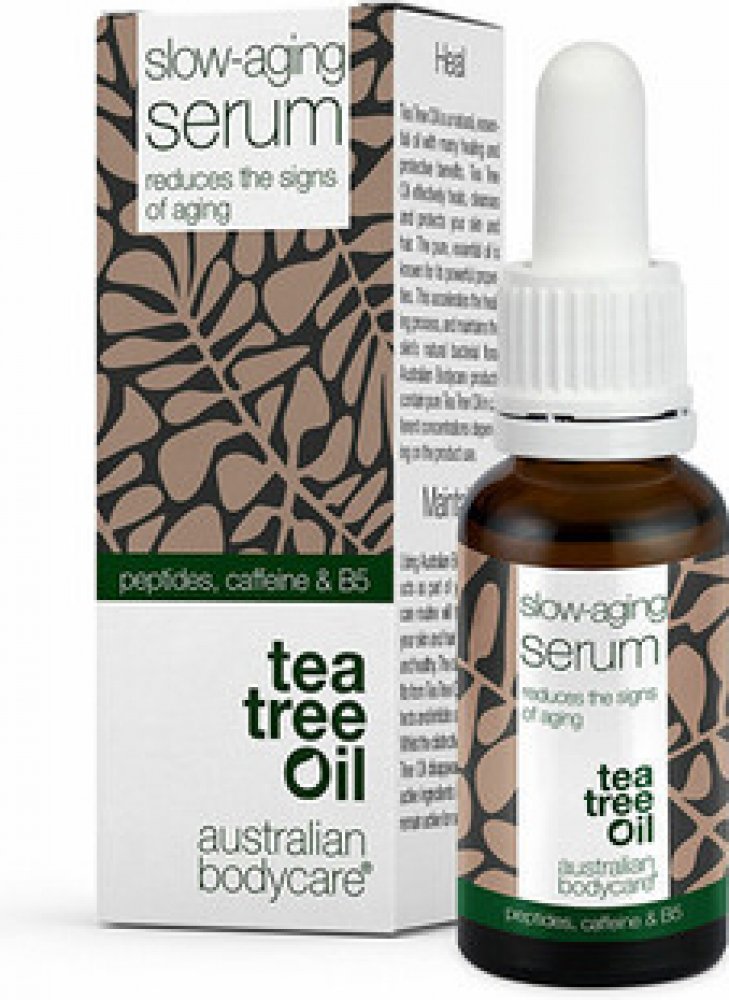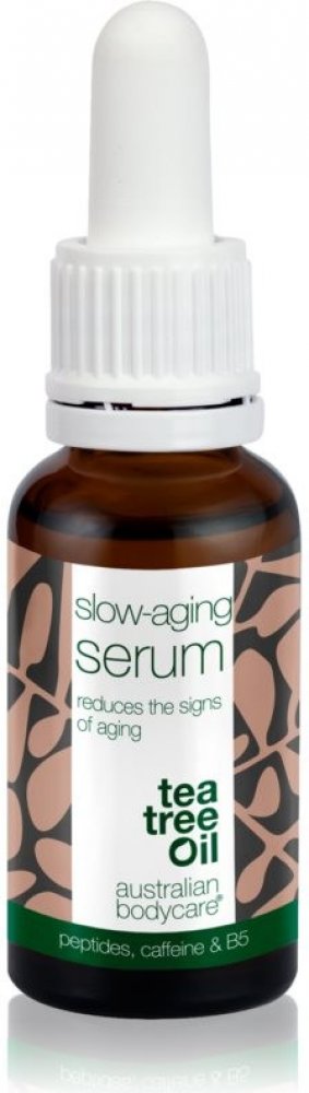 Dostatečná hydratace a výživa pleti je nezbytná pro minimalizaci výskytu jemných linek a vrásek. Hydratační složky slow-aging séra pomáhají vyhlazovat jemné linky a vrásky, takže jsou méně viditelné a pleť je na dotek hladká. Sérum Slow-aging navíc obsahuje peptidy a antioxidanty, které vyhlazují, osvěžují a hydratují zralou pleť. Pleťové sérum obsahuje také 100% přírodní Tea Tree Oil, který udržuje pleť zdravou a přirozeně vyváženou.