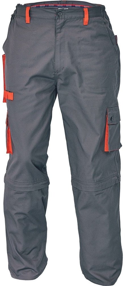 pracovní kalhoty pohodlného střihu, elastický pas; 6 funkčních kapes; na zip odnímatelný spodní díl nohavic; nastavitelná spodní šíře nohavic pomocí suchého zipu.