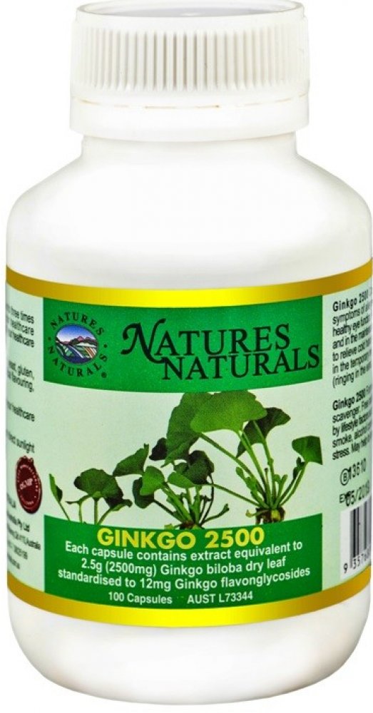 Složení: každá kapsle obsahuje koncentrovaný extrakt z listu v ekvivalentu odpovídajícímu množství sušené rostliny: Ginkgo biloba - list 2 500 mg. Přídatné látky: hydrogenfosforečnan vápenatý, stearan hořečnatý, koloidní křemík, želatina, celulóza, voda. Neobsahuje: cukr, škrob, lepek, kvasnice, mléčné složky, umělá barviva, aroma, konzervanty.