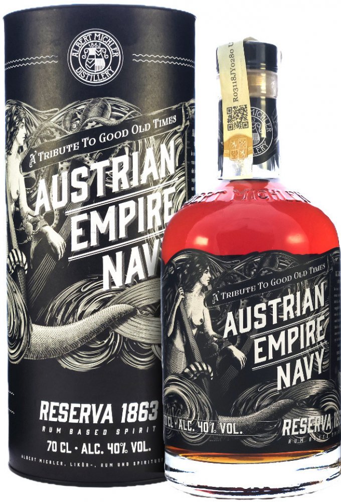 Austrian Empire Navy Rum Reserva 1863 je velmi elegantní rum původem z Barbadosu. Zraje v sudech z amerického, francouzského dubu a v sudech po španělském sherry. Unikátní směs 5 - 12 letých rumů, které jsou již jako nemíchané destiláty výjimečné. Unikátní metoda staření jednotlivých složek směsi dává tomuto rumu originalitu a podmanivost. Vyvážená sladkost, ovocné tóny a příjemné nenásilné aroma této komplexní mistrovské směsi osloví všechny milovníky výjimečných destilátů.