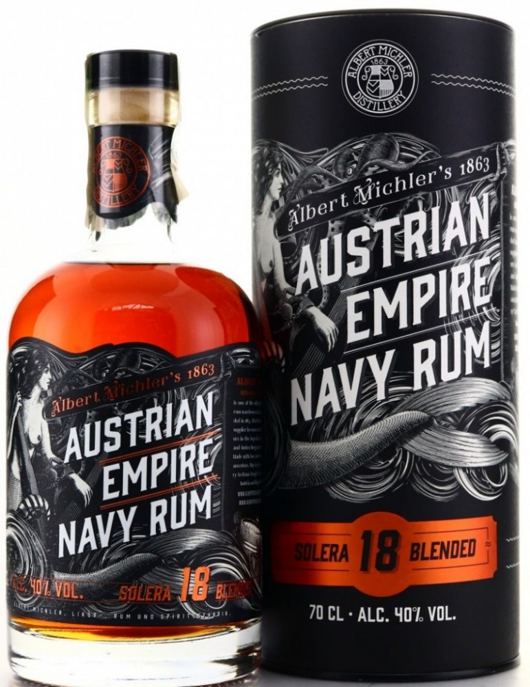 Austrian Austrian Empire 40 % 0.7 l 18 let Barbados tmavé Bourbon, Francouzský dub, Americký dub tuba