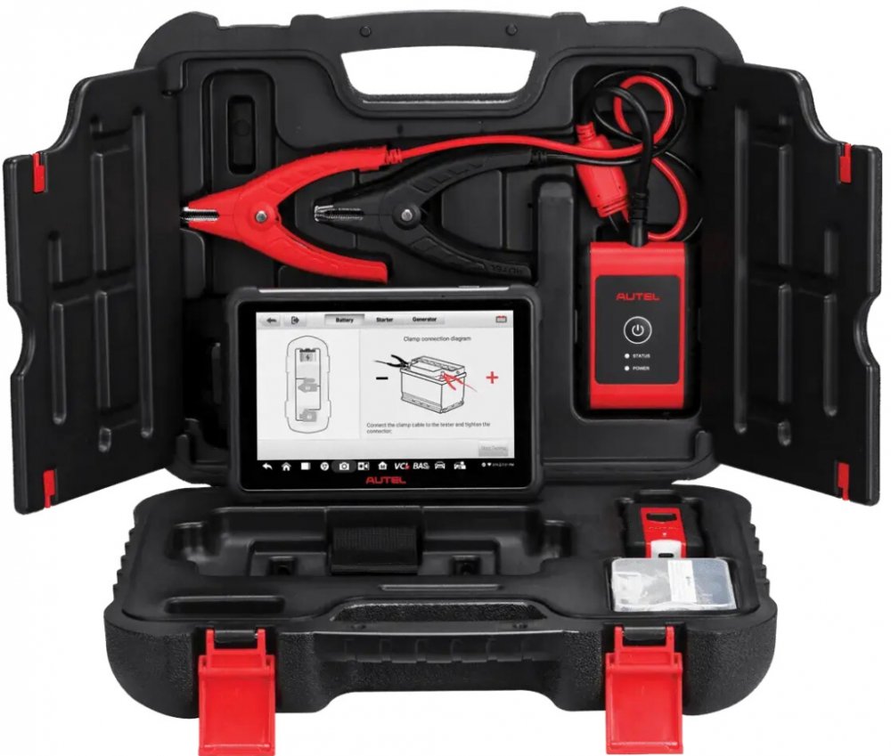 Autel MaxiBAS BT609 je inteligentní bezdrátový tester baterií a elektrického systému spojený s plnohodnotným diagnostickým tabletem. Pomocí 7" dotykového Android tabletu provádí přesnou analýzu stavu startovacích baterií, testuje startér i alternátor, podporuje testy 6/12V baterií (100–3000 CCA) a 12/24V startovacích/nabíjecích systémů a zároveň zvládá čtení/mazání chyb, zobrazení live dat a desítky servisních funkcí.