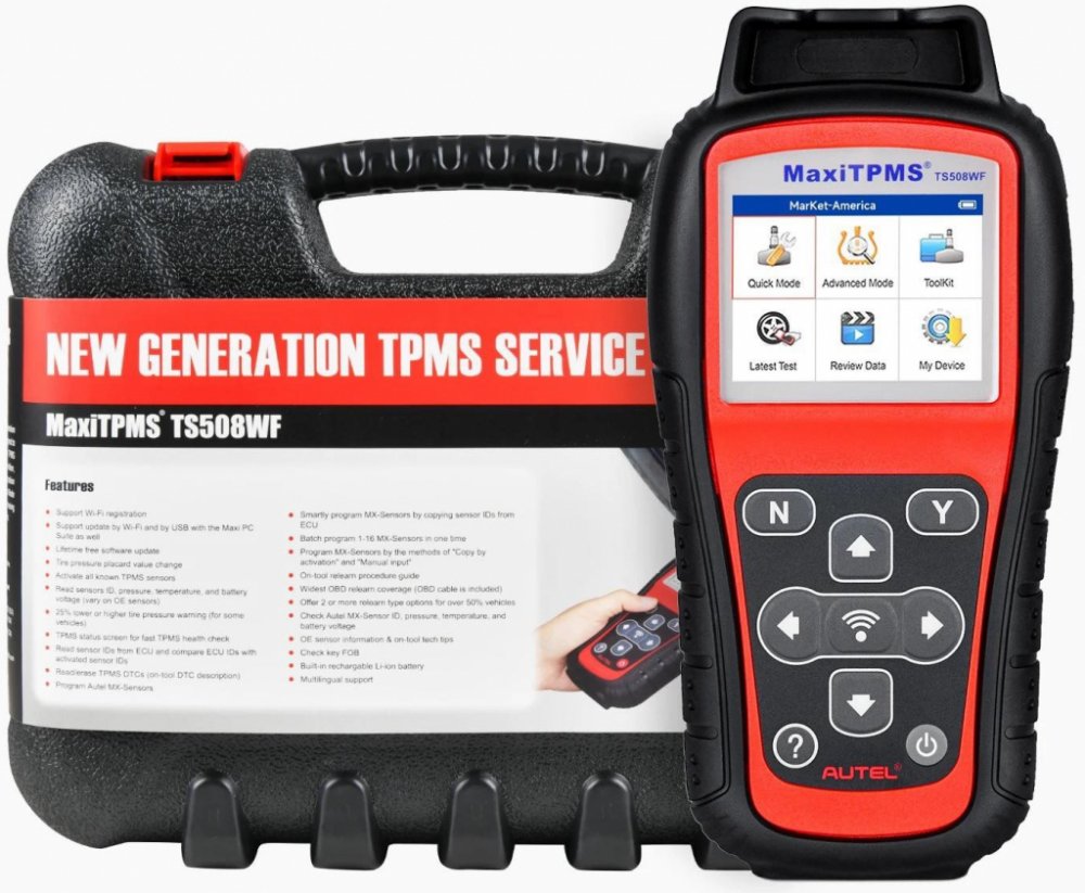 Přístroj dokáže načíst/aktivovat/přecvičit všechny známé snímače tlaku v pneumatikách, má 4 metody programování MX-Sensor a u podporovaných vozidel provádí reset hodnot na displeji. Díky vestavěné metodě měření tlaku v pneumatikách na originální tovární úrovni dokáže Autel MaxiTPMS TS508WF diagnostikovat systém měření tlaku v pneumatikách, včetně čtení a vymazání kódu atd. a také číst údaje o tlaku v pneumatikách v reálném čase, včetně tlaku v pneumatikách, teploty, stavu baterie atd.