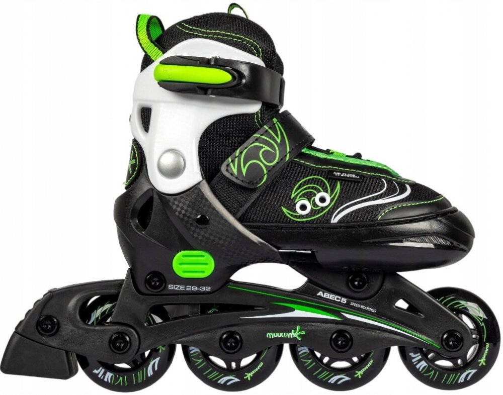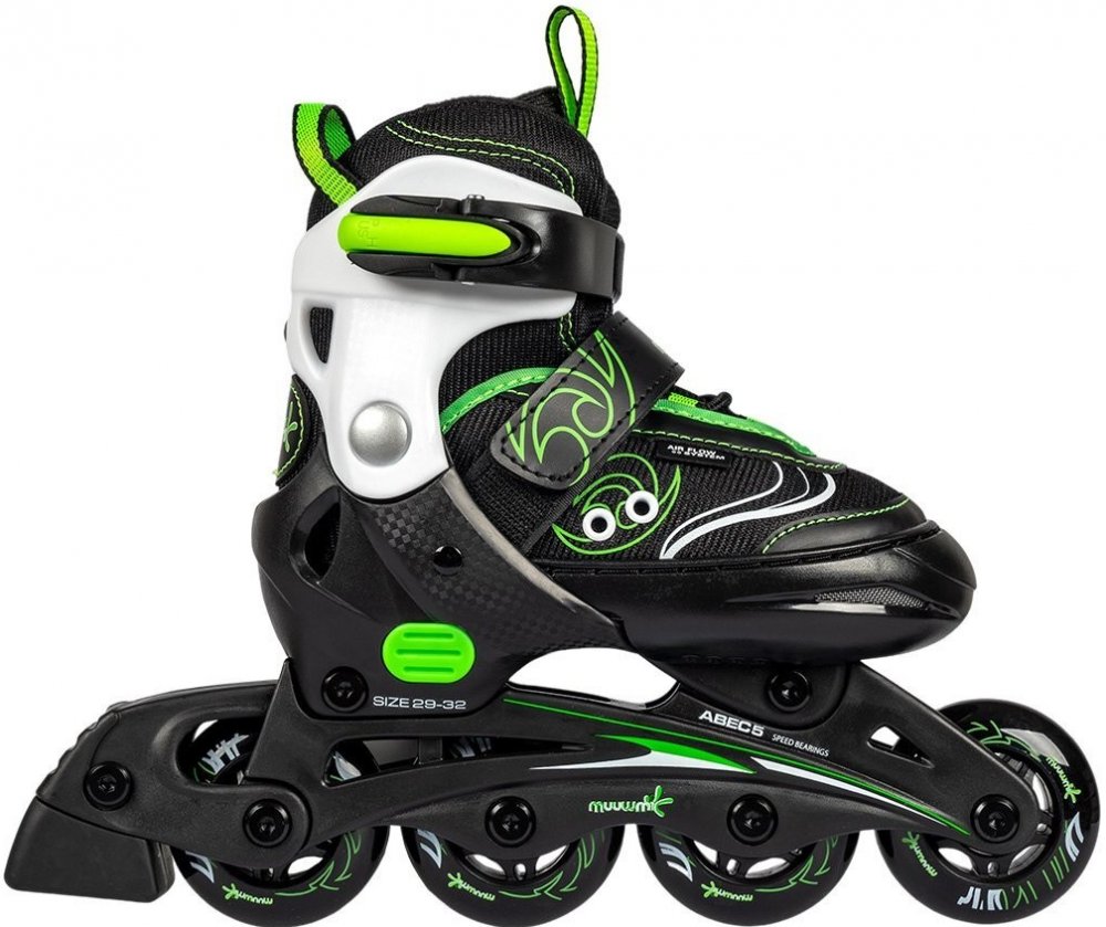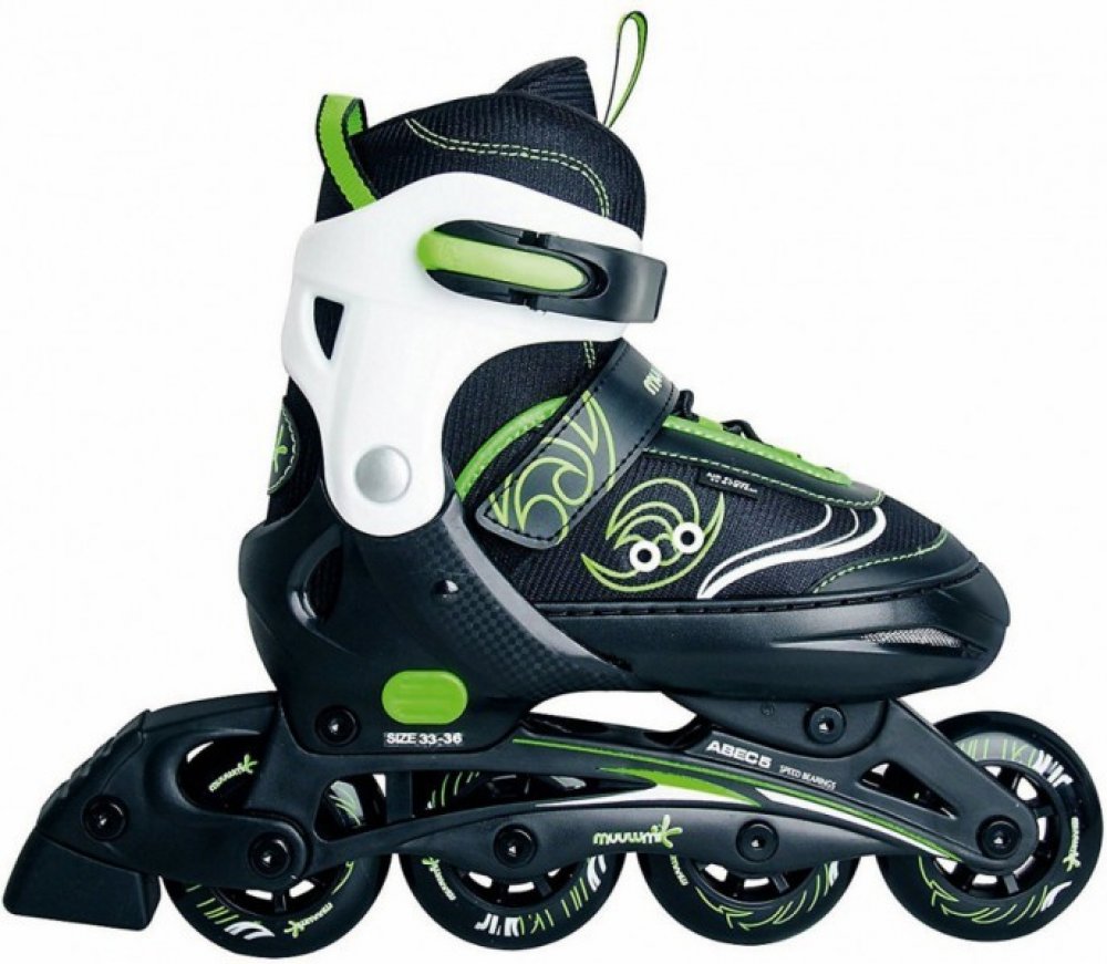 Užijte si hodiny zábavy a pohybu s těmito stylovými zelenými inline bruslemi Muuwmi, které jsou ideální pro malé bruslaře. Díky nastavitelným velikostem brusle porostou s vaším dítětem, takže se z nich bude moci těšit dlouhé roky.