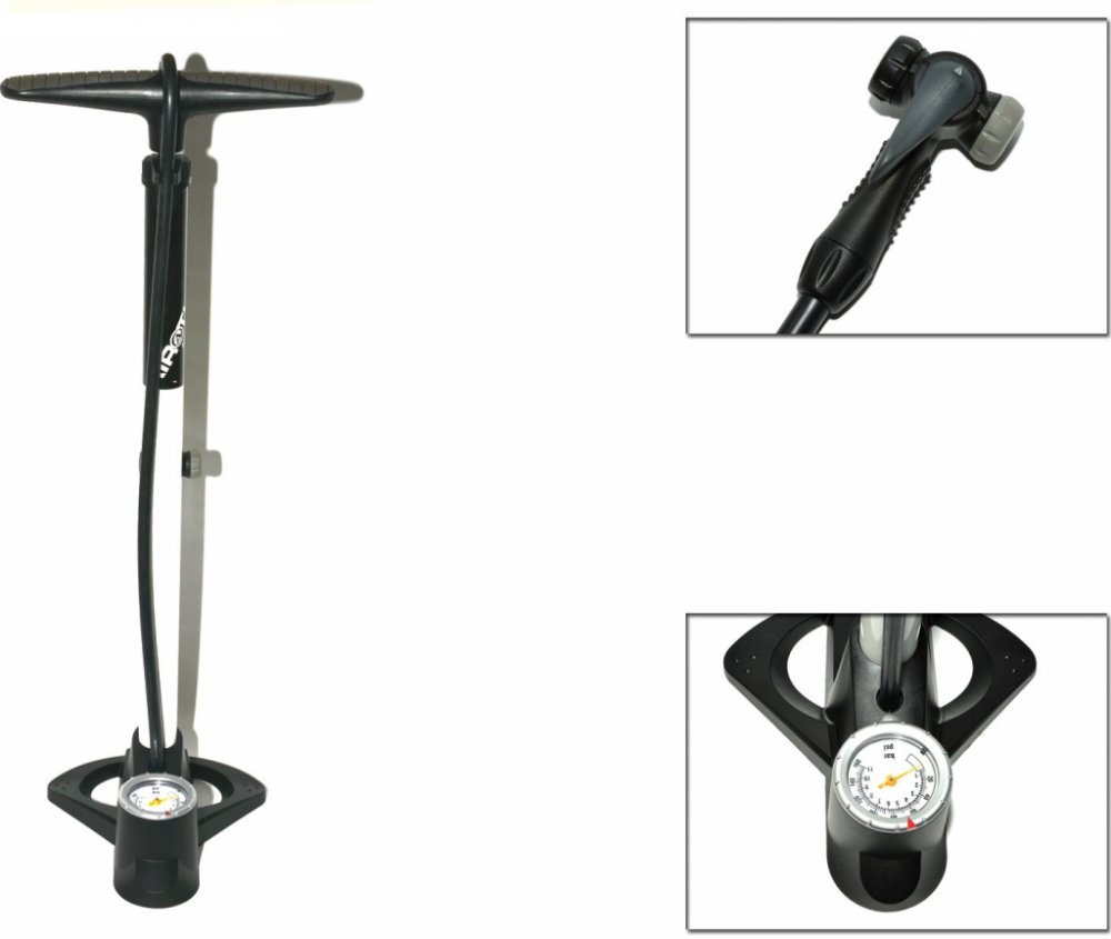 Nožní hustilka s manometrem, univerzální DualHead 2 oboustranná hlava pro všechny typy veloventilků. Materiál kompozit / ocel. Válec d. 32mm x l. 540mm, max. tlak 160PSI (1,1MPa). - Nožní hustilka s manometrem, univerzální DualHead 2 oboustranná hlava pro všechny typy veloventilků. Materiál kompozit / ocel. Válec d. 32mm x l. 540mm, max. tlak 160PSI (1,1MPa).