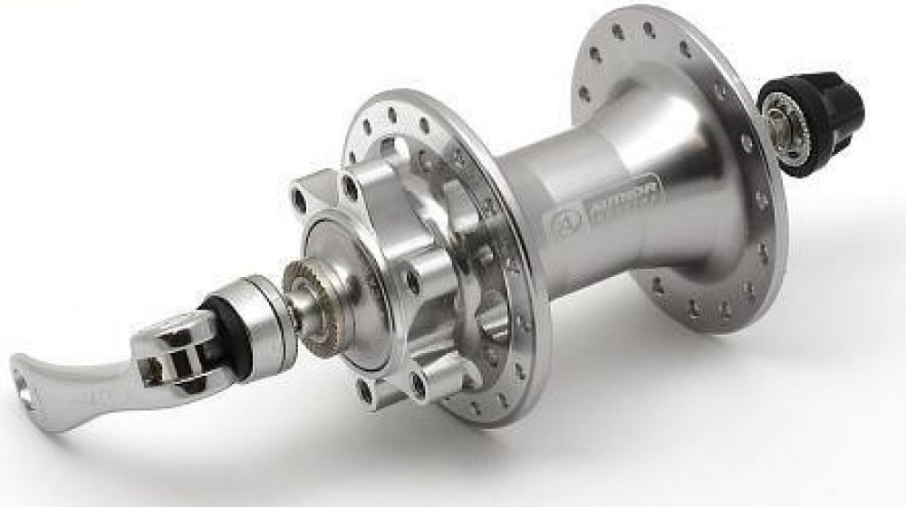 Tělo náboje: materiál AL6061T6, 14Gx 32 děr pro paprsky, 6 děr s M5 pro uchycení kotouče. Osa: materiál AL7075, d. 9mm x 108mm. Uložení: 2ks kuličkových ložisek S a S s těsněním (levá a pravá strana), hmotnost 283 g. Provedení udává počet děr náboje.