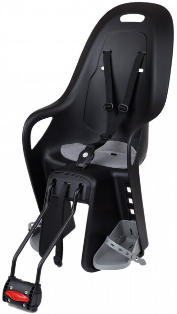 Sedačka roste společně s dítětem díky 4 výškovým polohám nastavení opěrek nohou a 2 výškovým polohám upínacích popruhů. To zajišťuje optimální přizpůsobení a komfort během používání. Specifický tvar nosiče je přizpůsoben pro jízdní kola s nízkým rámem nebo koly o velikosti 29 palců.