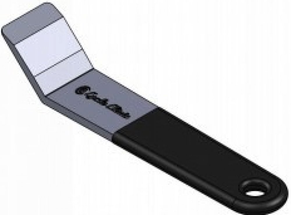 - Speciální tvar umožňuje lehké zasunutí mezi brzdové destičky uvnitř třmenu.